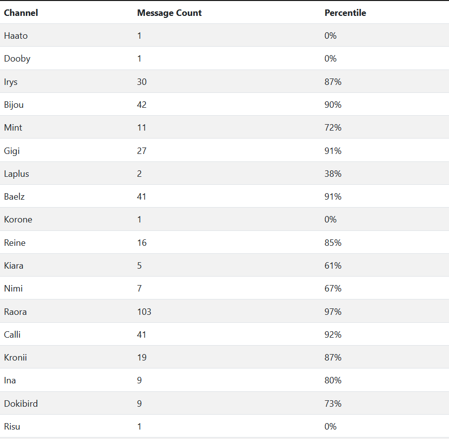 Джастисы: Жижа - "жируха на пенсии", контент на уровне, приправленный "хаотичностью" персонажа и петросянщиной. Сиси - приложение к первой. Почти не воспринимается как отдельная чуба. ЕРБ - "возрастная" проф.певичка, которая стоит особняком от всего коллектива и ложила болт на всю эту вашу чуберскую рутину. Пантера - охуительное решение перепаковать рисоваку с мигренями в идол щит. Сам контент максимально примитивный чуть выше Бав, но доить аудиторию умеет. Тут есть связка крепкая связка первых двух, плюс общительная Пантера, но Ербиха чуть менее, чем всегда проёбывается на стороне.