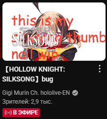 Пиздабол, её стримы не смотрящий, играет она настолько плохо, что это физически больно смотреть. Если бы не Хололайв, советчики из чата, и то что игра Миядзаки друг на друга похожи эта бы геймер-герл плавала со своими скиллами на дне Твича с 30 зрилами, потому что смотреть там не на что. Не скилла, не мозгов.