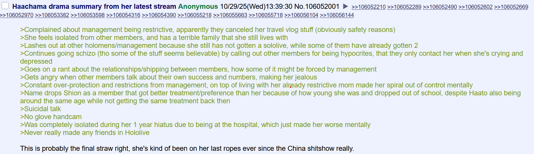 А вообще у тебя классический виктимблейминг. Ты не знаешь всей внутренней Холо-кухни, и то как бабищи могут быть лицемерны на публике и класть на тебя 3 хуя за кулисами.