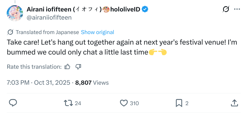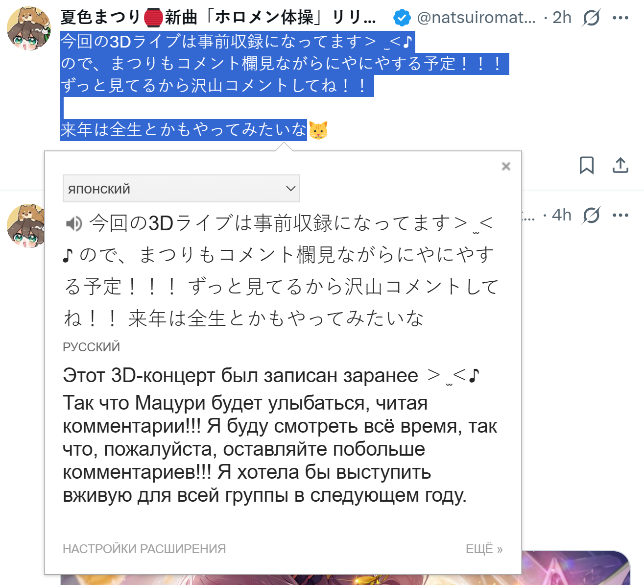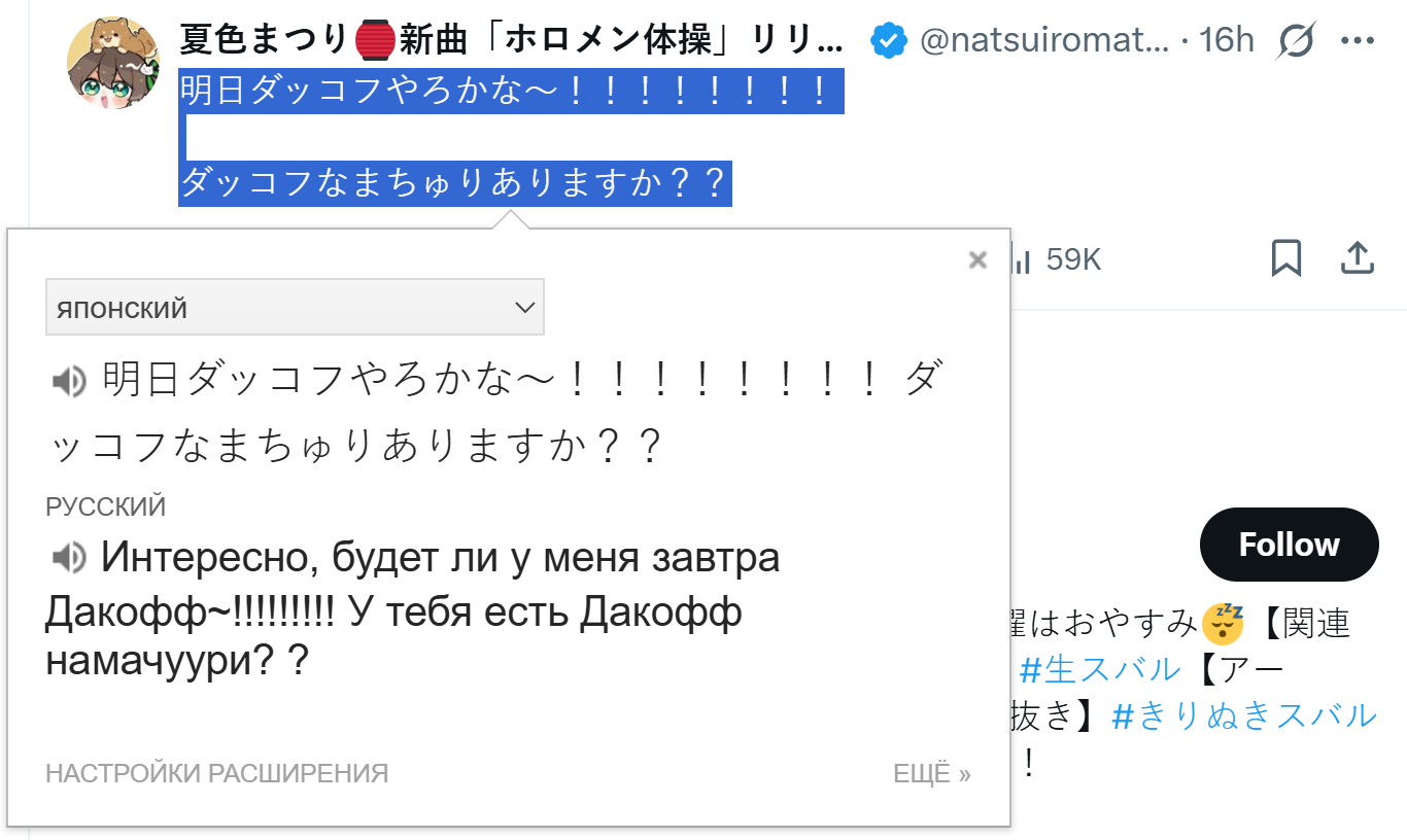 >>480710 >>480720 >>480724 Я не знаю жапанский, но вчера 4+ часа слушал ее стрим и судя по всему написанное правда