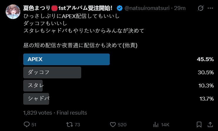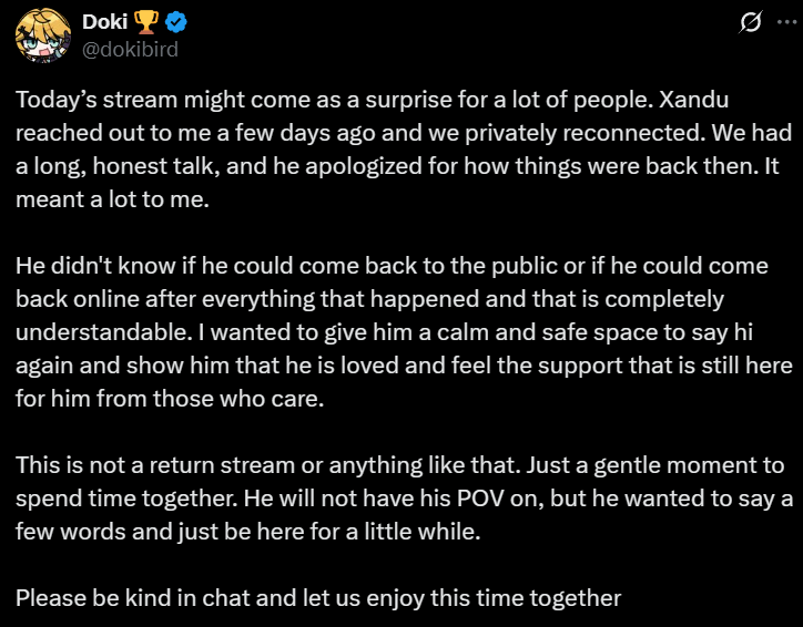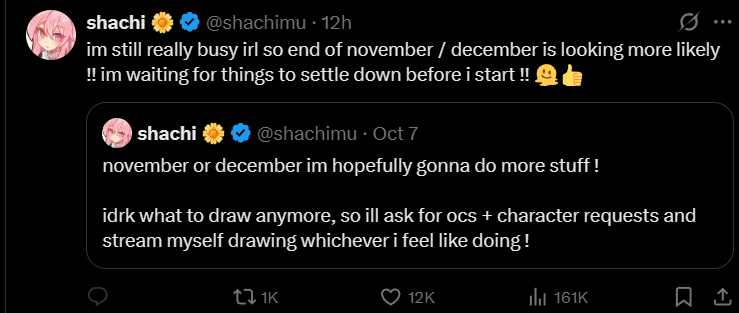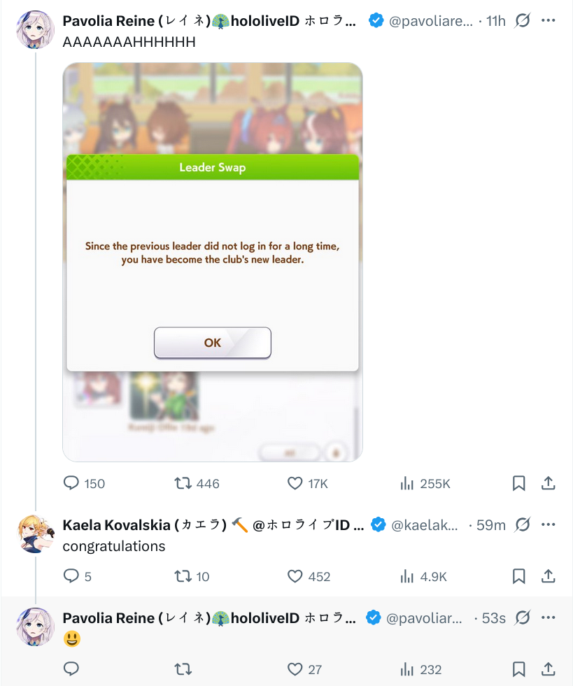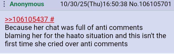 >>480645 Ты прав, после своих хиатусов, надо было восстанавливать вьюверов, как-то крутиться, даже та же Аяме которая изобрела no streaming и не любит стримить вообще, участвовала во всяких движухах: холоГТА, гейм фест, не помню была ли в расте и майнкрафте, инициировала прощальный УНО-коллаб с Шион и вторым геном, в общем понимала, что это большие ивенты, будут зрители, будут клипы Хаато слишком пассивная