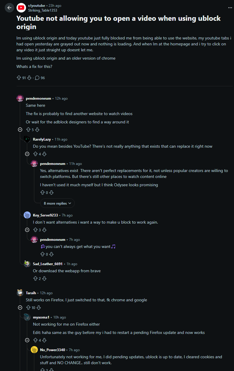 >>481464 Да, всему реддиту накрутил. >>481462 Да знаю, просто понадеялся, что попустит, сейчас обновить юблок не так просто с в3 маняфестом, только на старых браузерах. >>481461 Адблок блотварная хуйня с проплаченной рекламой.