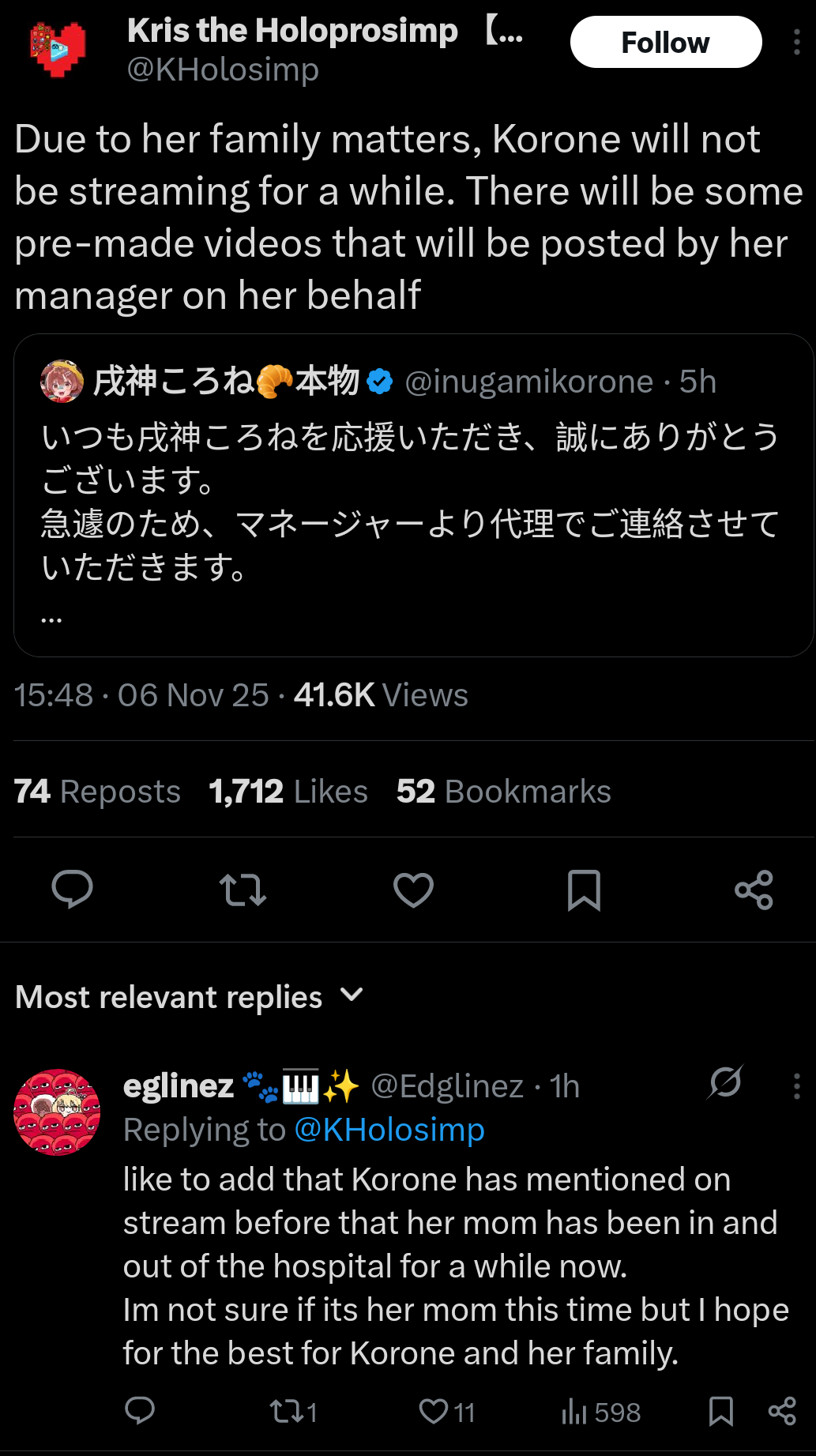 Приятель, который практически не смотрит витуберов, задал мне вопрос. Я списал это на японский рабочий менталитет, трудную юность в которой приходилось много работать, ну и то что Коронэ любит Соулсы + уже не молодая и пытается скопить себе на безбедную старость. А как вы ответили на данный вопрос?