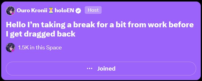 >>486219 Скоро и отдыхать будет за двоих. Саба до сих пор в хиатусе и не подаёт признаков работоспособности. Дуба в очередной раз отвалилась, сегодня отписалась, что выспалась - ждём на днях стрим и очередной отвал.