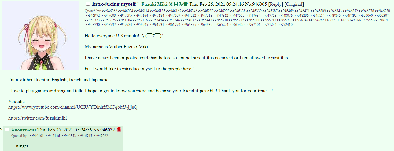 >Усада Пекора продолжает стримить в одиночку, несмотря на то, что все участники Hololive отменили трансляции из-за землетрясения и цунами. >В довершение всего, она даже добавила слово «землетрясение» в список запрещённых в чате. Хуясе база.