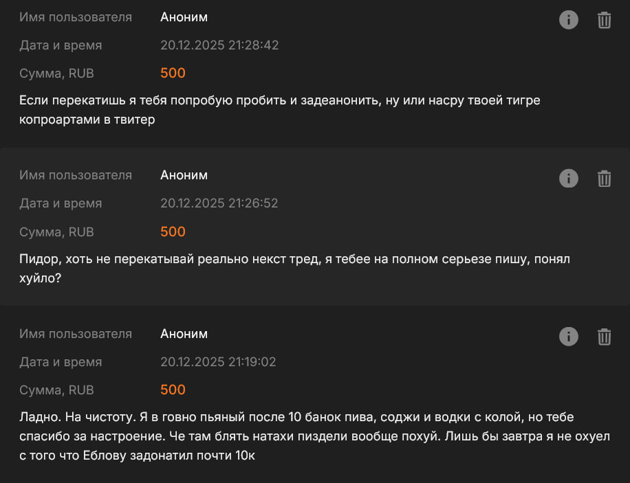 >Пускай для начала хотя бы на онлайн всех троих вышеперечисленных выйдет Ну, условной Дубе наступает на пятки, там и онлайн ниже, чем у оставшихся двух, так ещё и нестабильный - может как в 7к выйти, а может и с 2к зрилами сидеть, пердеть.
