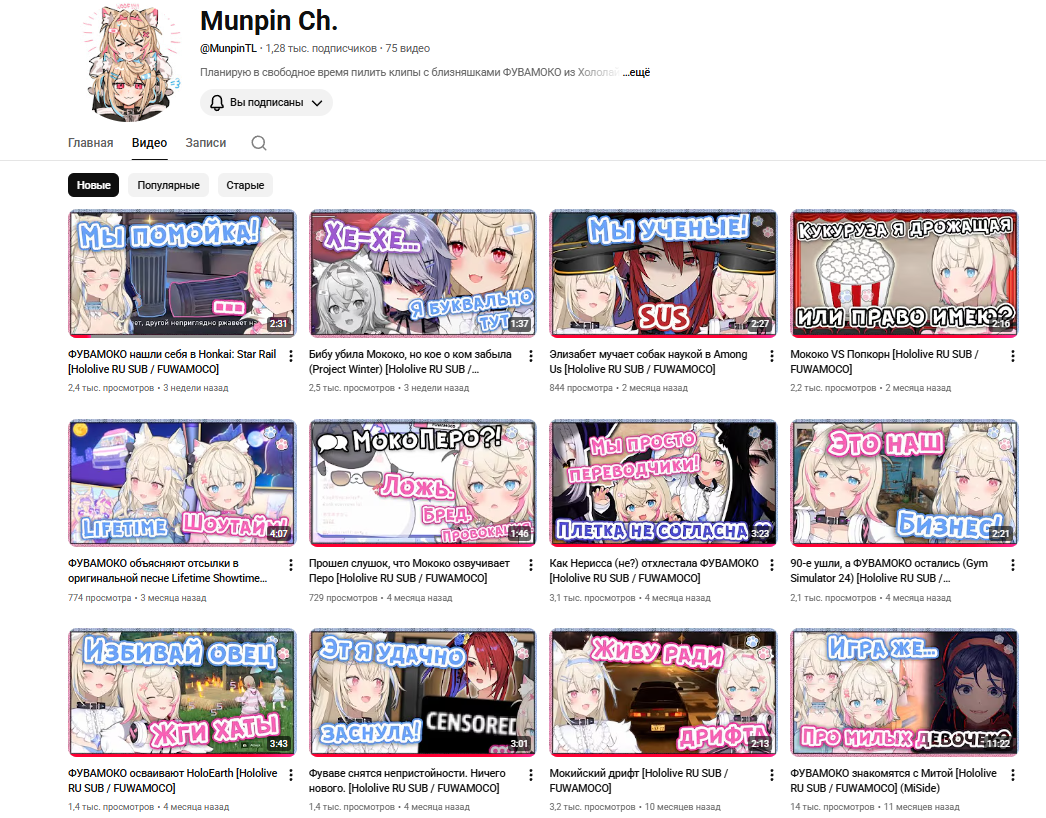 Где блять эти десятки русаб-клипперов нарезающих Фувамоко, на которые сбегаются русские? Я вот дрочу поиск, смотрю сейчас самые популярные клипы Фувамоко за месяц в попытках найти тот скрытый хидден-гем что делает ру-сабы для Фувамоко с пятизначными числами. Или ты увидел русские название от Ютуба в названиях клипов с Фувамоко или решил что это русаберы-клиперы? Спешу тебя разочаровать, солнышко, это нейросетка от Ютуба. Причем крайне дерьмовая. Я даже в комменты к самым популярным клипам захожу в попытках найти русские комменты, но там их нет. Про Бибу я даже обсуждать не буду. Там очевидно, ей крутят ботов. Можешь мне сколько угодно рассказывать про популярность Бибу, я тебе просто скину пик с просмотрами Филлиан для сравнения (пик 3/4).