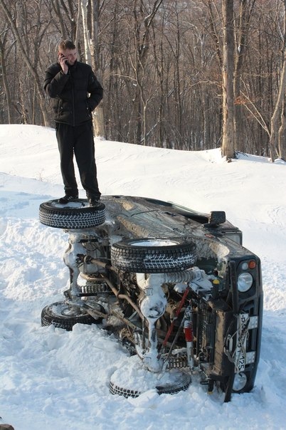 >>2247 Да он небось в телефон говорит что-то типа "подъезжайте, посоны, позырите как я угла дал, пока обратно на колёса не поставили", а штурман снимает. Ща позырят, поставят и поедут дальше опрокидываться.