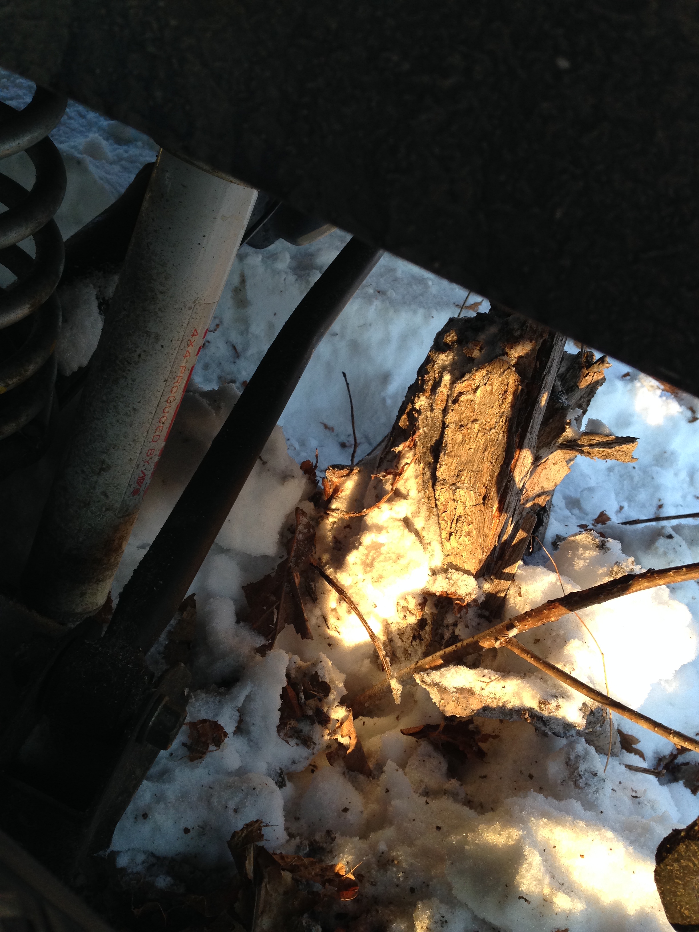 Дернул себе анус панару. За день 300 км туда сюда по всяким ебеням намотал, думаю дай ещё заеду в этот холмик к которому ведёт козья тропка. Забуксовал, назад, поехал, забуксовал, при очередном съезде назад такой звук туньк, выхожу - пень. Фото сделано когда ситуация еще не перешла в разряд "уже не смешно". Каждая попытка сдвинуться с последующим откатом била панару ещё сильнее. Думаю, ну ладно настало время вызывать подмогу. Беру гейфон, а он нахуй сдох, СУКА ПИДОРСКАЯ МАРЗЬ С 35 процентов, ЁБАНАЯ БАТАРЕЯ. Тут то анус поджался по настоящему. Потом быстро стемнело, я стою на горе, а основная лесная дорога по которой раз в час проезжает мимокрокодил в 2х минутах бега. С 5й попытки успел сбежать перед мимокроком. К слову я как истинный еблан нихуя я собой не взял, только трос и омывайку. У него тоже нихуя не оказалось, потолкал он меня, но бестолку. Попросил отвезти до гаража, с его телефона позвонил БАТЕ. Кароче уже в темноте с батей поехали вызволяться. Спилил пень, а меня уже начало тащить в обрыв, через деревья тросами привязывались за раму, тянулись, милимитрировали между стволами, пилили другие пни деревья. Вообщем вытащил он меня, тянув за раму сбоку через дерево пока я сдавал назад. Такая хуйня.