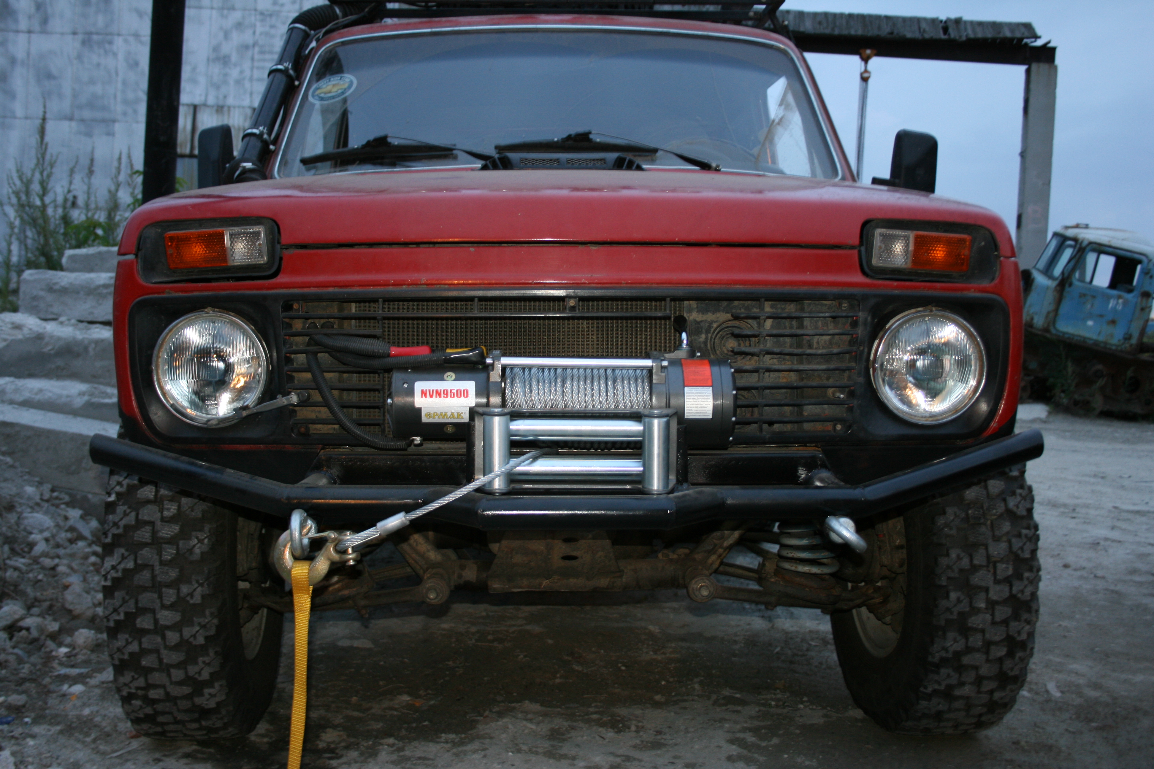 У меня такой проблемы не стояло - старая Нива с завода подготовлена :3 А нельзя через стоковый бампер вывести что-то типа поперечной балки с креплением на раму?