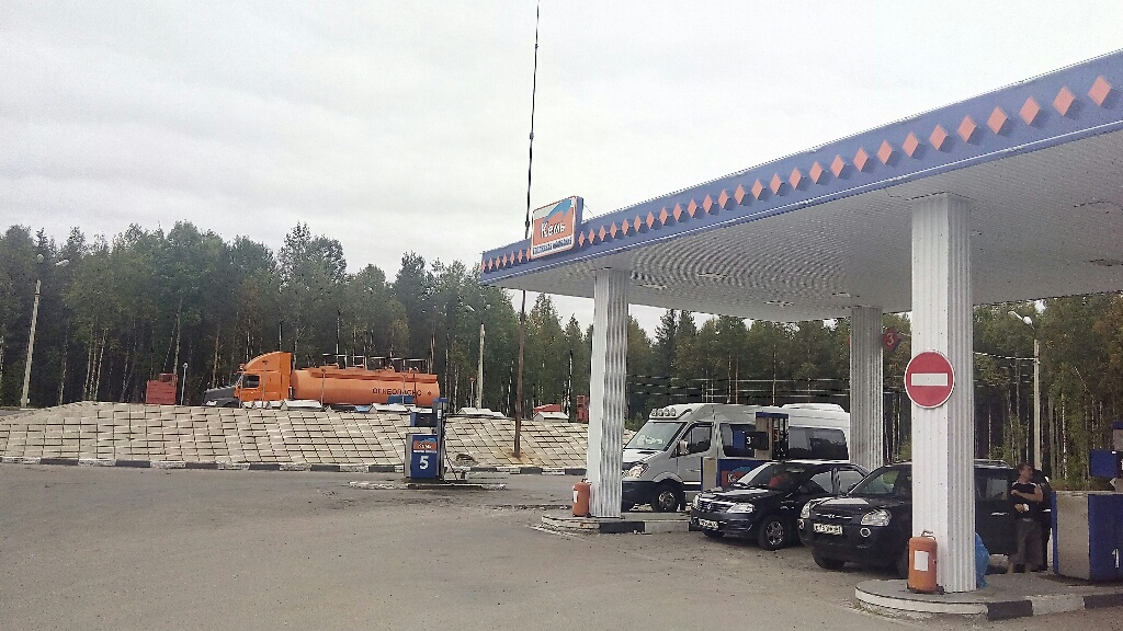Собственно вот она. Она не прямо на повороте, да. Она чуть дальше. Кафешка там норм, а вот бенз не оче. Но не столько не очень как бенз с АЗС "АЗС" под Оленегорском. Кстати, Кемь- кун, а что у вас в Кеми за толпы половмников? заехали в Кемь по дороге туда
