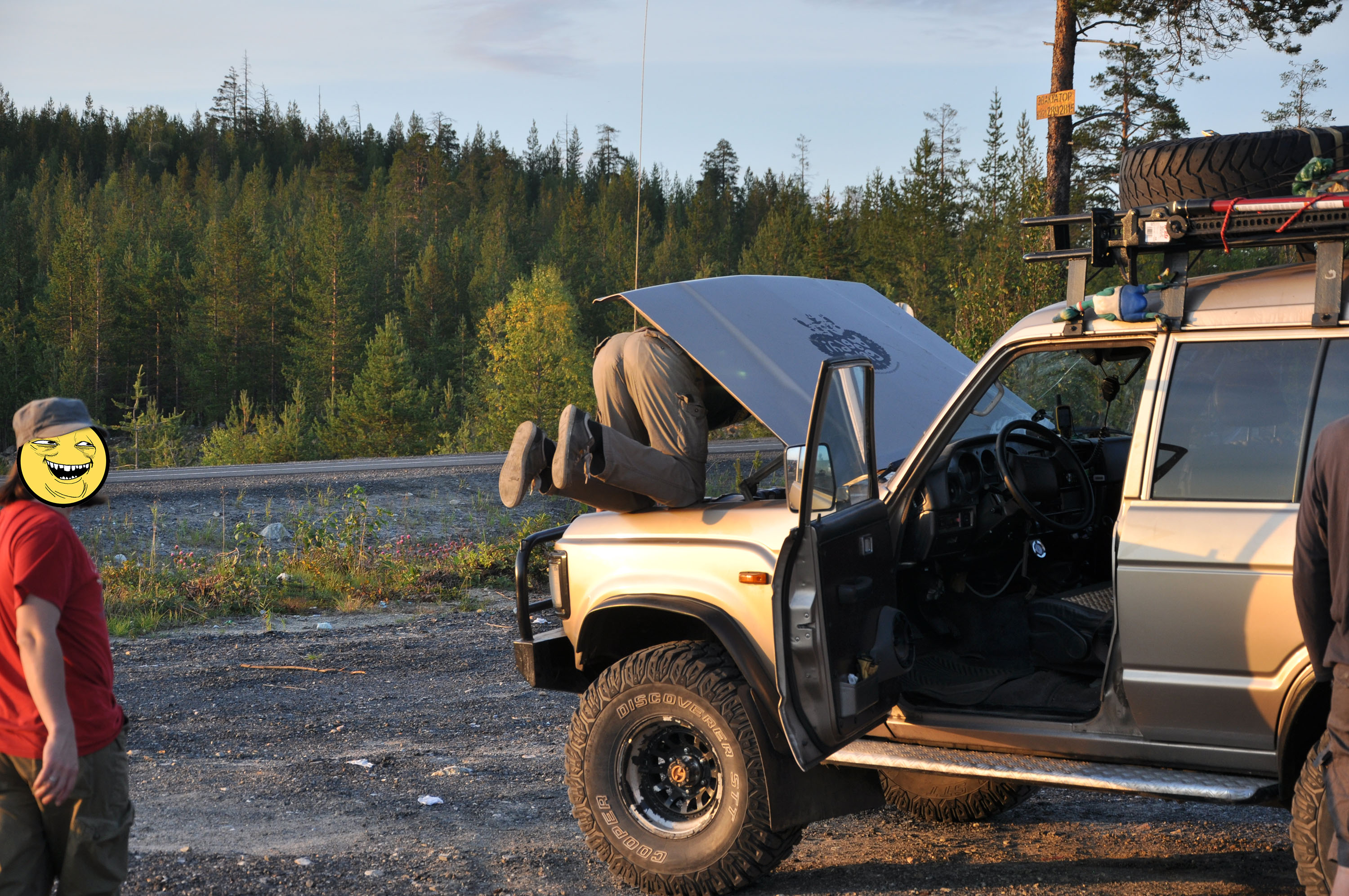 Да я тоже к этому с иронией отношусь, ну ты помнишь кулстори как у меня радиатор в ебенях северного приэльбрусья порвало и как я кантовался у хачей каких-то, но как бе мне тоже 31-го на работу надо и там не очень поймут, если я при этом буду чинить самоходный корейский гроб в Медгоре лол. Впрочем, север как-то неохотно собирает дань с моей машины, за прошлый (довольно хардкорный) прохват по Хибинам и Ловозёрам ничего не отвалилось, будем надеяться, на полуостровах будет полегче даже :3
