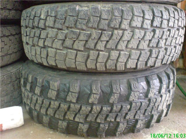 по поводу того что тяжолые, как сказать конечно потяжелее чем зимние данлоп но джимник их нормально крутит хотя динамика процентов на 5-7 % упала, но это же грязевка она должна быть потяжелее. Ездил на ней и по грязи и по камням причом по острым, все норм не режется. Что очень понравилось это по асфальту совсем не шумит и износостойкая тоесть не горит на асфальте летом за сезон только усики стерлись хотя езжу на машине на работу каждый день. В грязи тоже замыливаеться ехали по лесу по грунтовой дороге по осени и шёл моросяший дождь и дорога промокла сантиметров на 5 и грязь стала прилепать к колесам тогда то и замылелась и причем у меня комфорсер и у друга тоже на джиме ёкогама джиоландер и на паджерике гудрич ))) . но отчитаешься тоже очень быстро. В общем резина очень хорошая ни чем не хуже дорогих аналогов. Бери не пожалеешь мне для охоты рыбалки вполне хватает. Но еще возьму вот такую на пробу 7,50L-16 Фбел-253М для суровой грязи )) У меня получилось по 60- 80 грамм на колесо, на джимник на стондартные мосты ставят и 33 колеса и ничего полуоси живут, а фбел всего лиш 29 я думаю ничего не будет)).