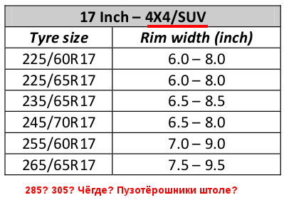 >>29732 Да хуйня это всё. На ниве, 31"/10.5/15 отлично ходили при ширине диска 8". Ширина резины 267 мм. Ездил на давлении 0.8 пока не проверил, довольно долго. Меньше читайте этих таблиц из инета.