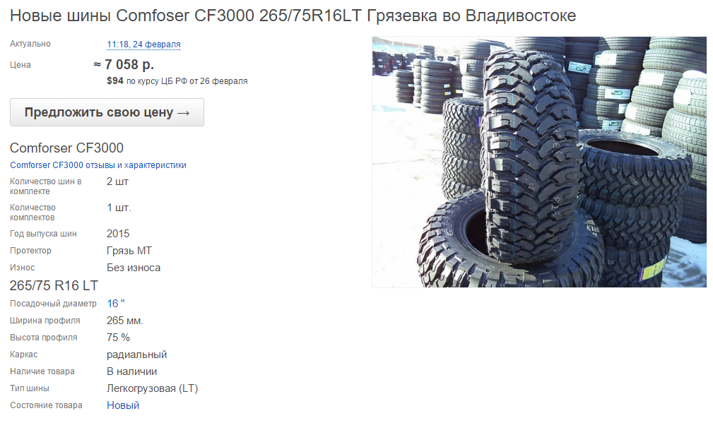 >>30359 7к за колесо. 265/75 16. Кайрон. Всегда кроме зимы, поездки по асфальту не больше 500км. Иногда съезжать на оффроуд просто так или на алкопокатушки