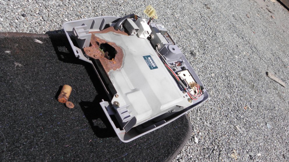 Походу где то в дренаже люка была проблема и капелька за капелькой проржавили корпус потолочного "компьютера" если его так можно назвать, кренометр, компас и часы. Самое интересное, что кузову было хоть бы хны. В целом для своего года состояние было огонь.