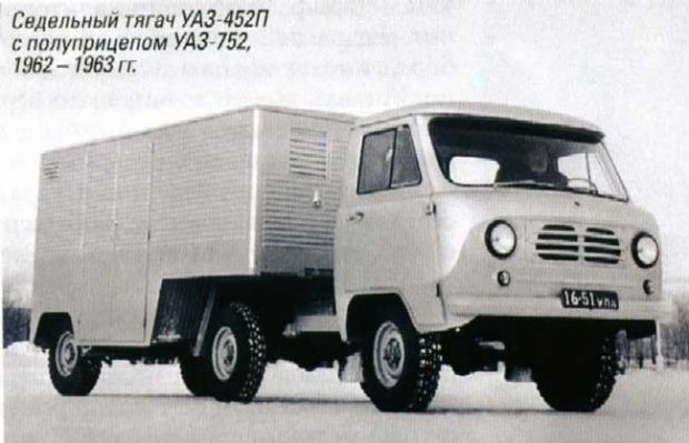 Идея использовать УАЗы с полуприцепами, честно сказать, не нова. Версии седельных тягачей были и ранее, например УАЗ 456