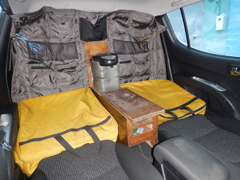 Общая длинна модуля 280 см, ширина 160 см, высота с опущенной крышей 135 см. Слева от входа будет "диван" — длина 170 см, ширина 60 см, высота 50. Под диваном будет большой рундук для хранения вещей. Диван будет раскладной, благодаря этому внизу будет спальное место 170 см на 130 см (но это спальное место на всякий случай, не основное). Справа от двери будет техническая зона — маленькая раковина, газовая горелка, АКБ для солнечной батарее, бак с водой, и конечно ниши для хранения вещей. Кроме того, запас технической воды будет передвигаться в канистрах, на внешней стенке модуля, которую внутри усилили 5 мм листом алюминия. Основное спальное место будет над крышей, и крыша как многие уже догадались, будет подъёмной. Размеры основного спального места 195 см на 160 см. Крепиться модуль будет по периметру на 10 болтов, 4 сквозных — по центру, и 6 болтов в резьбовую заклёпку — 4 дырки у кормы и 2 у кабины. Со временем, может сделаю ещё два крепления к силовому бамперу, с помощью рым болтов. Подробности, фотографии и обсуждение в блоге Артема. https://www.drive2.ru/l/8943478/ https://www.drive2.ru/l/9108780/