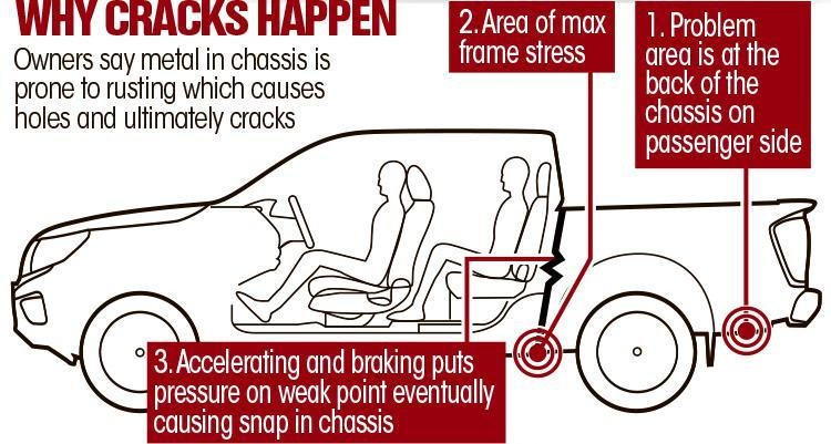 Из-за низкой коррозионной стойкости они в процессе эксплуатации трескаются и надламываются в месте сочленения кабины и грузовой платформы. Дефект нередко приводит к тому, что автомобиль в буквальном смысле ломается надвое.