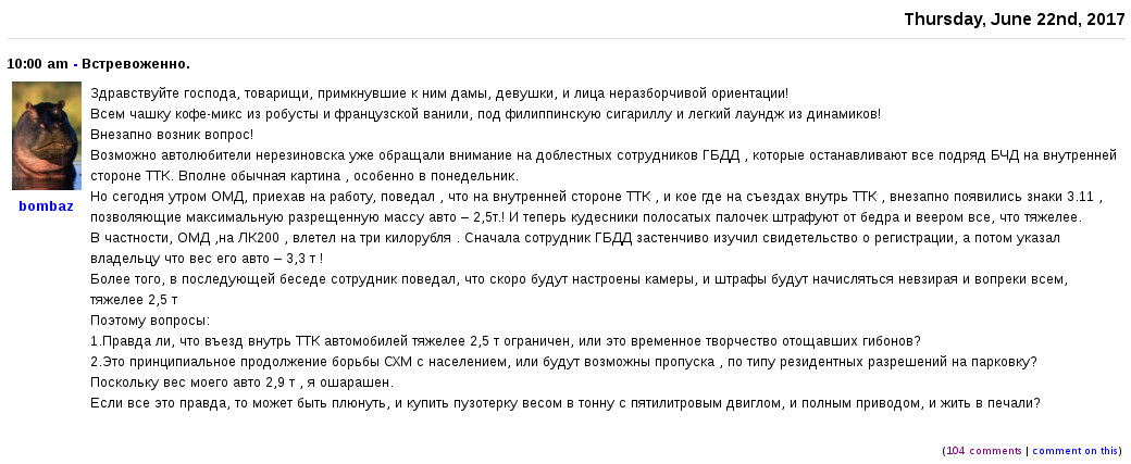 >>44681 Ссылка отвалилась. http://ru-auto.livejournal.com/41583200.html ТЛК-ВИП-хозяина, конечно, развели на бабло, но если и правда стоят и ловят всех, а потом камеры запилят для автоматического ебания... Раньше хоть пикапоёбов не тормозили.