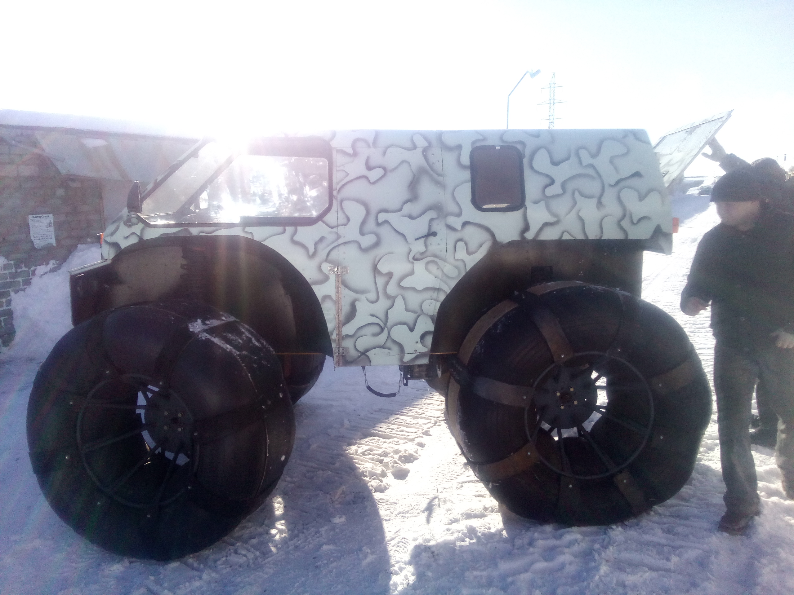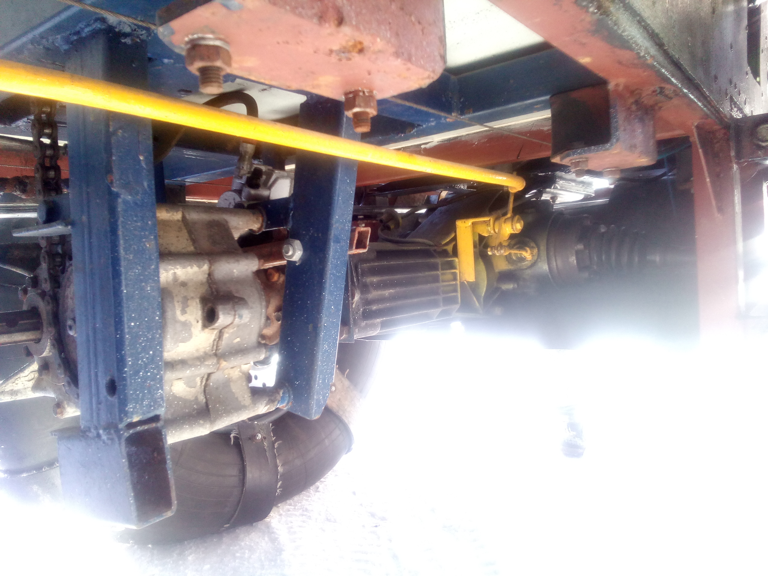 Зацените какое дерьмецо купили товарищу в нао сегодня. Долго отговаривали, но все равно захотел. Редуктор задний с блоккой от кватры, реверс-редуктор от муравья, кпп мотор ураловские, ступицы 2141, рейка зубила. В натяг вообще не умеет ехать, только ходом на сугробы заскакивает прямо как нива. Но место под передний редуктор предусмотрено, может и лучше с ним поедет. Надо мотор с кпп на автомобильные к июлю поменять и отправить контейнером счастливому владельцу. Или звёздочки махнуть на тяговые, думаем пока.