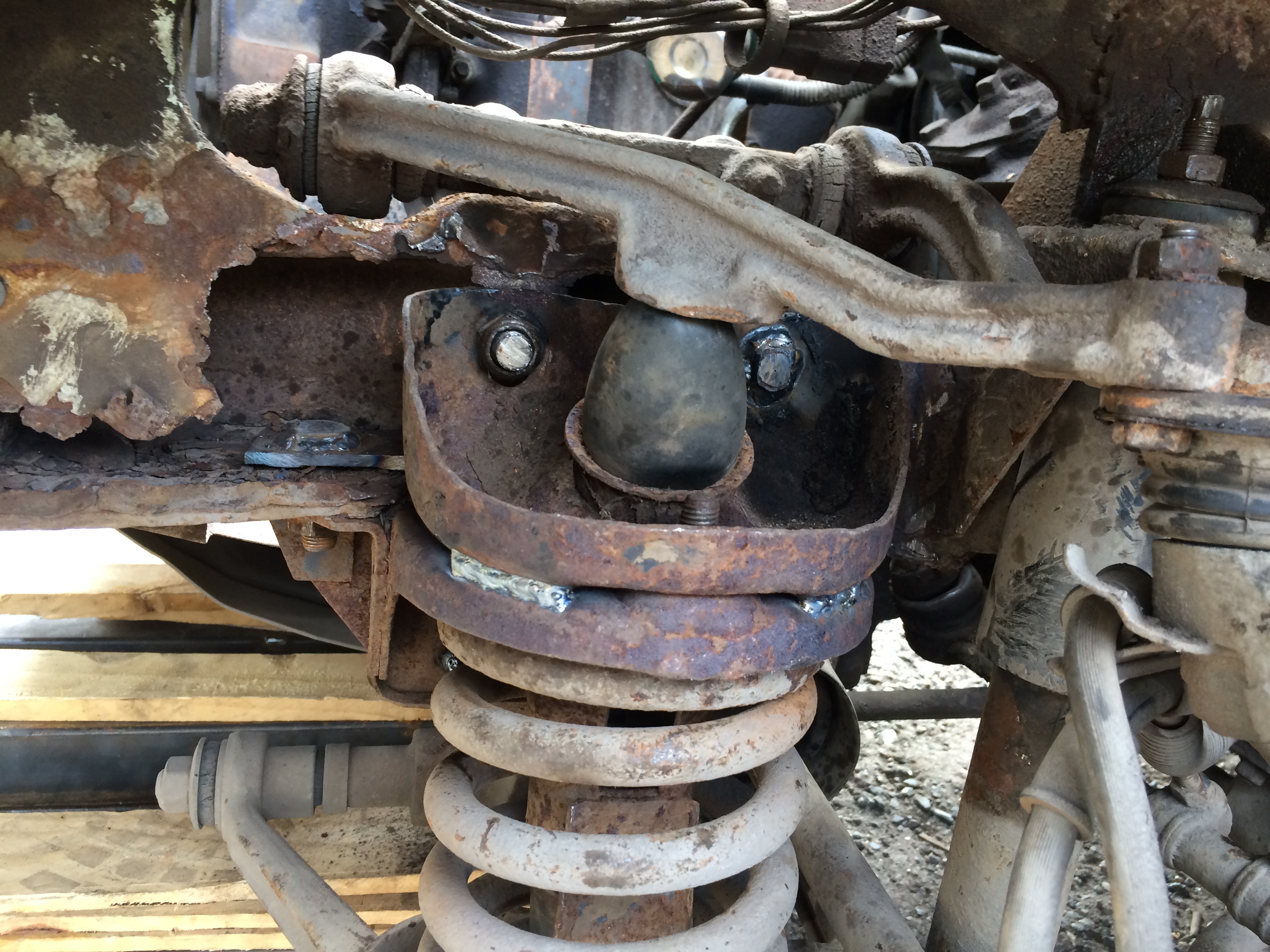Несколько дней назад стало что-то поскрипывать. Сегодня в багажник залез, покачал кузов и понял что жопа догнила окончательно. Заднее-правое колесо просится в салон, колесная арка начала ходить вверх-вниз, но усилитель стенки удерживает за оконный проем. Пружинная чашка треснула и частично отвалилась от усилителя. В общем такая хуйня, троссом здесь не примотать. Даже не знаю, может выкинуть диван и раму собрать?