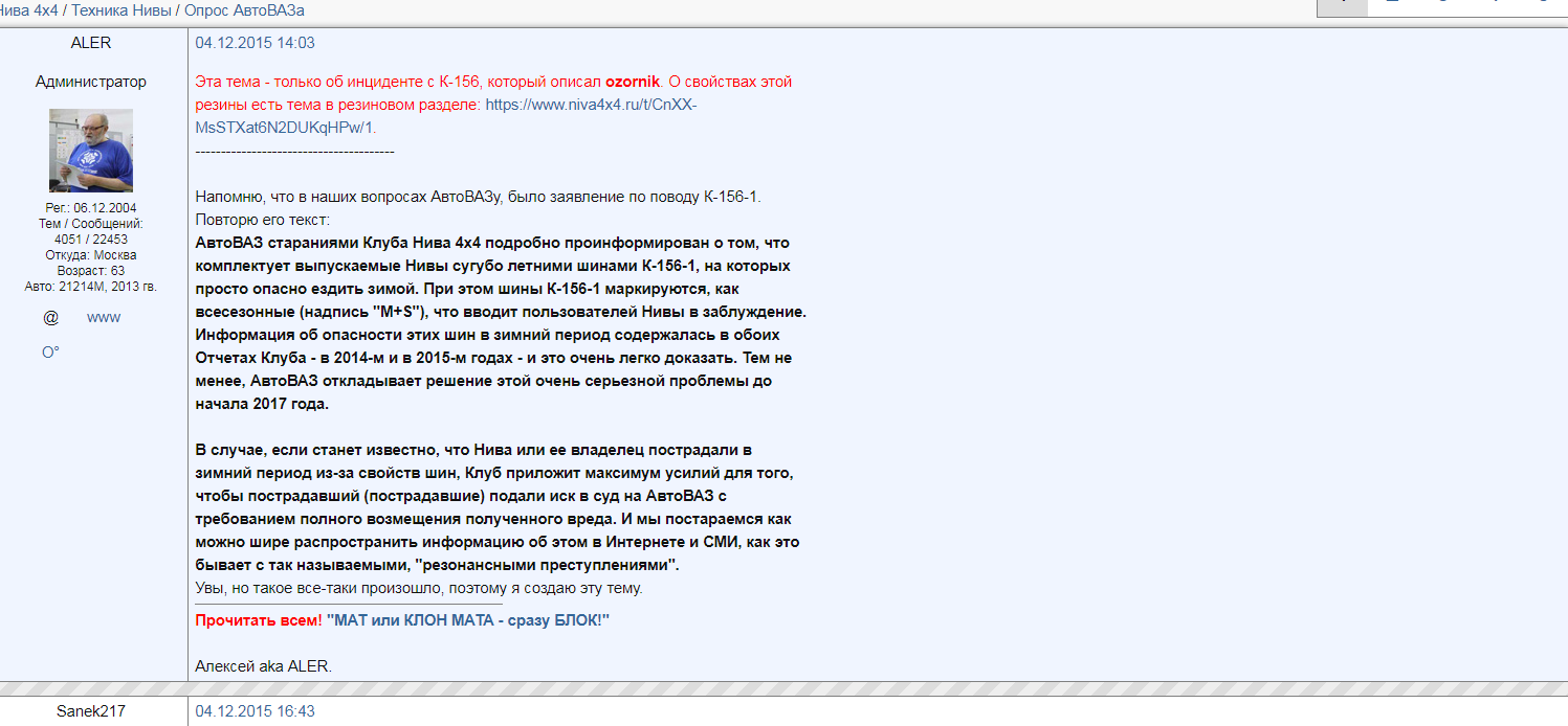 >>46808 >>46809 Ебануться, просто Е-БА-НУТЬ-СЯ. Вы не люди, вы звери нахуй. Видел я ниву, стояла около супермаркета, одно колесо на половину спущено у другого из боковины грыжа нахуй. Пригляделся, а это же ВЛИПЯТЬ даже совсем и не стёртая. Вы реально ёбнутые на этом говне ездить? Вам Ляо комфорсер дал, нет хочу говно жрать.