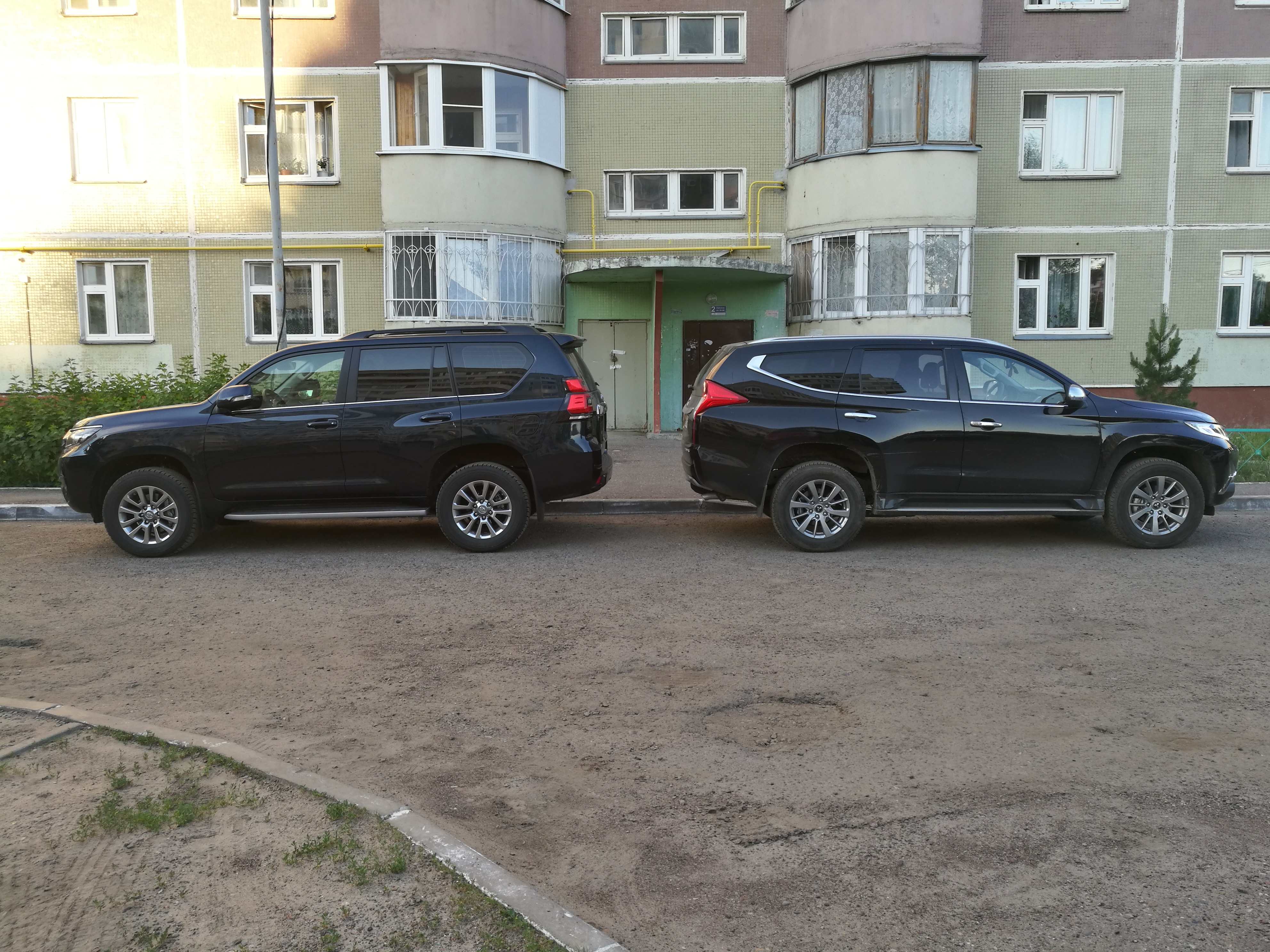 На втором пике повезло с парковкойнаглядно можно судить по размерам, но паджеро ощутимо уже.