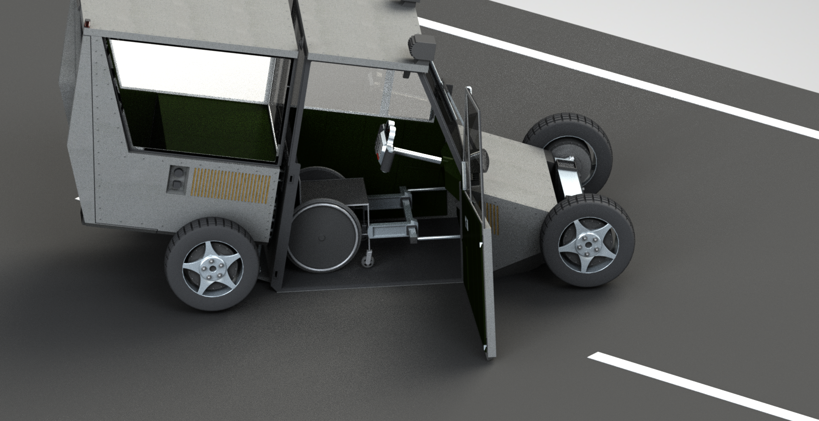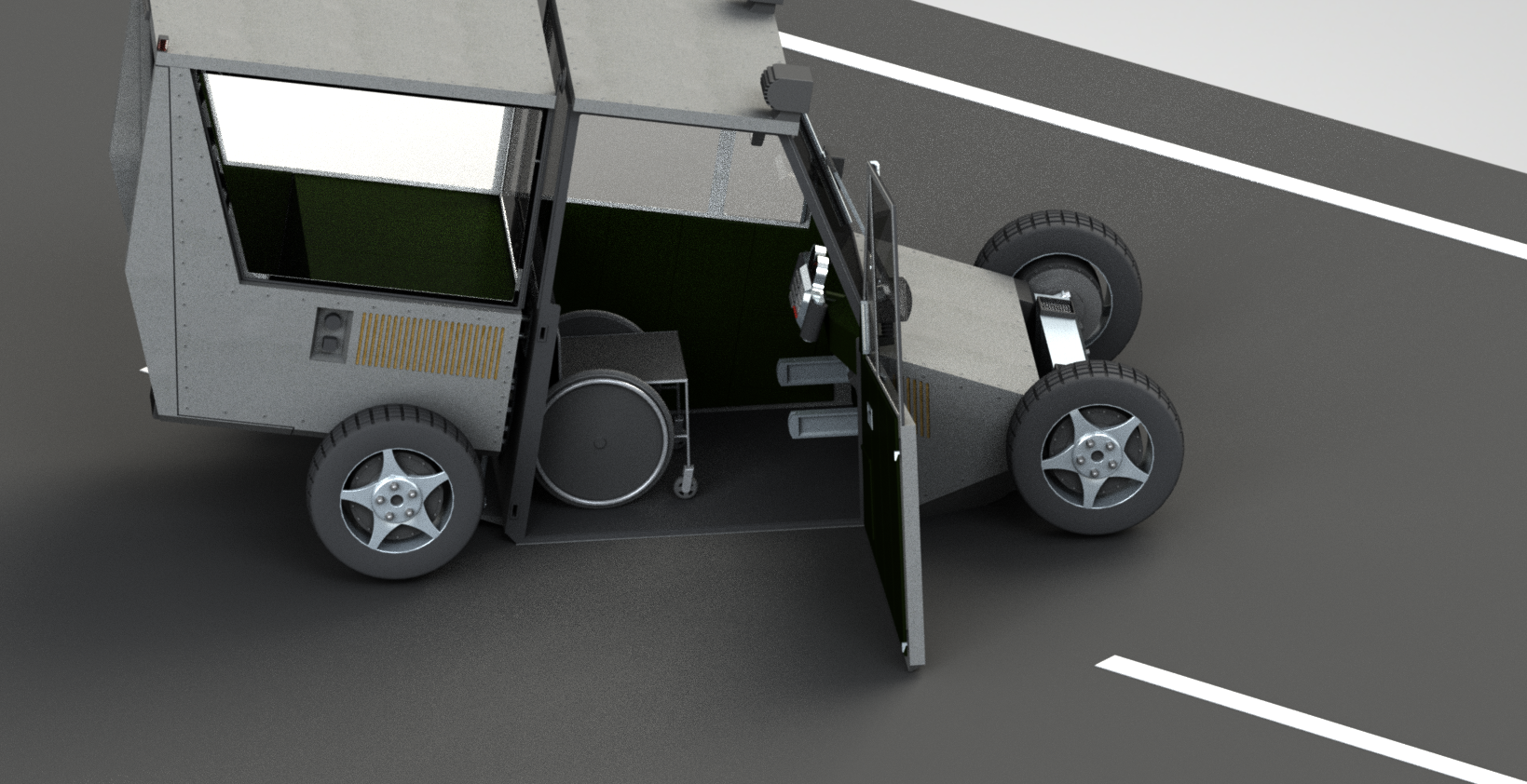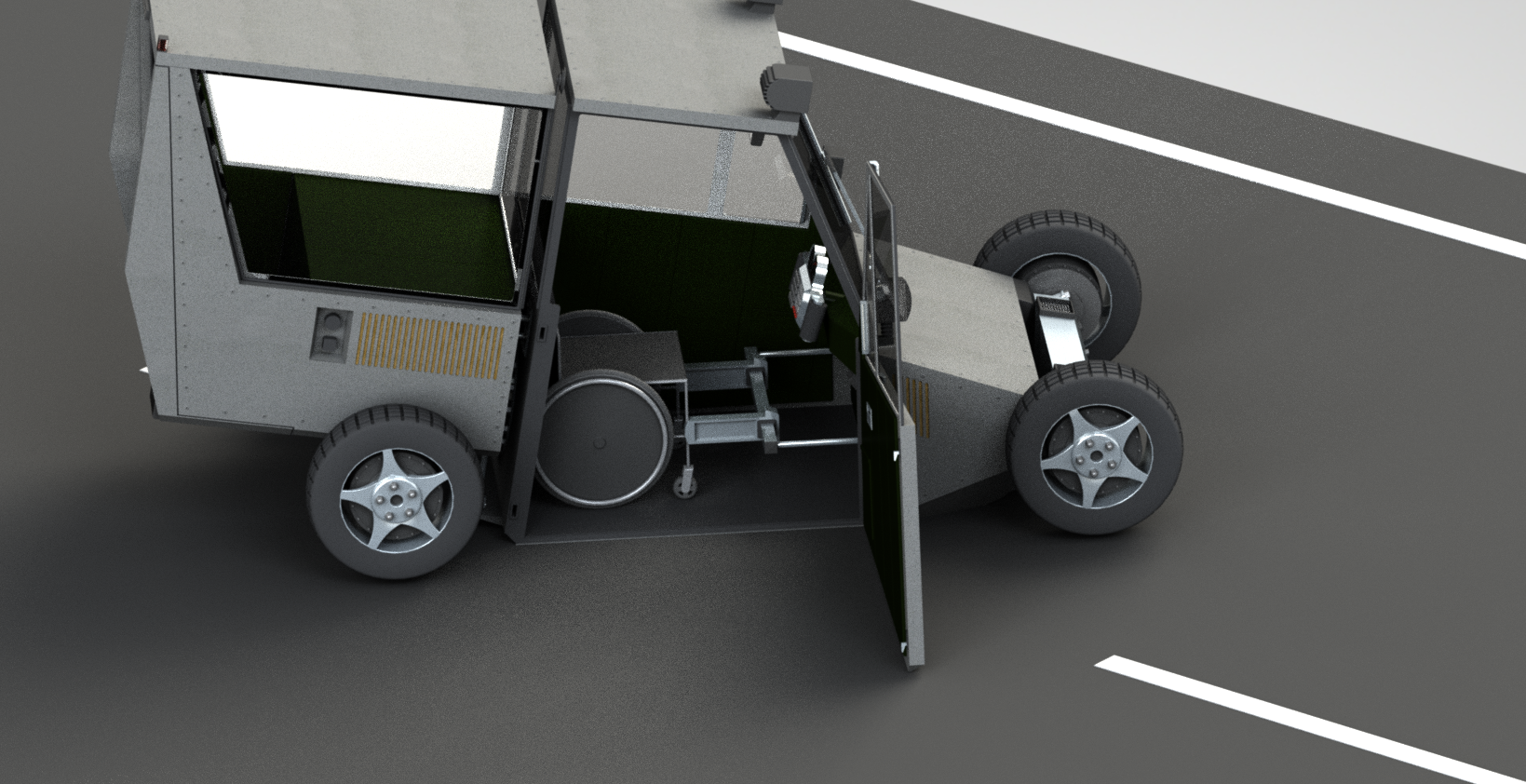 >>54987 >>54992 После более подробных расчетов выяснилось, что ломающаяся рама -- это плохо. Слишком много деталей -- увеличивает массу, длину колесной базы и уменьшает надежность. А еще удобство багажника и обзор портит. А движения колес относительно кузова, сходные с теми, для которых нужен этот шарнир, всплывают как дополнительный бонус от возможности машинки ложиться на пузико. В новой версии концепта цельный кузов и под ним три подрамника -- для передних колес и по одному для каждого заднего. Подрамники держатся параллельно кузову за счет пантографов, а опускаются и поднимаются пневморессорами. Единый подрамник для передних колес -- это чтоб в стороны слишком не качалось, ну и рулить проще. Руль, кстати, на проводочках. Не очень безопасно компенсируется малосерийностью, но зато люфтить не будет, и можно сделать сам руль в салоне совсем маленьким для инвалидной машинки полезно. Температуры -- до -30 (аккумулятор литий-титанатный). Ожидаемая цена 20-30к евро. Но пока еще даже нет первого прототипа...