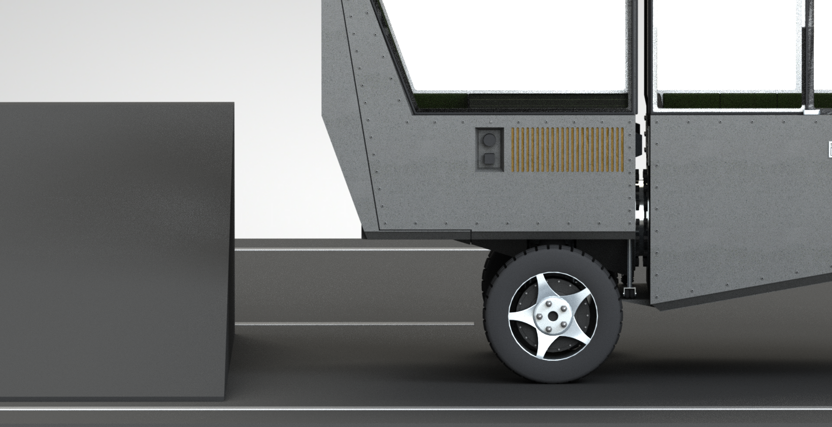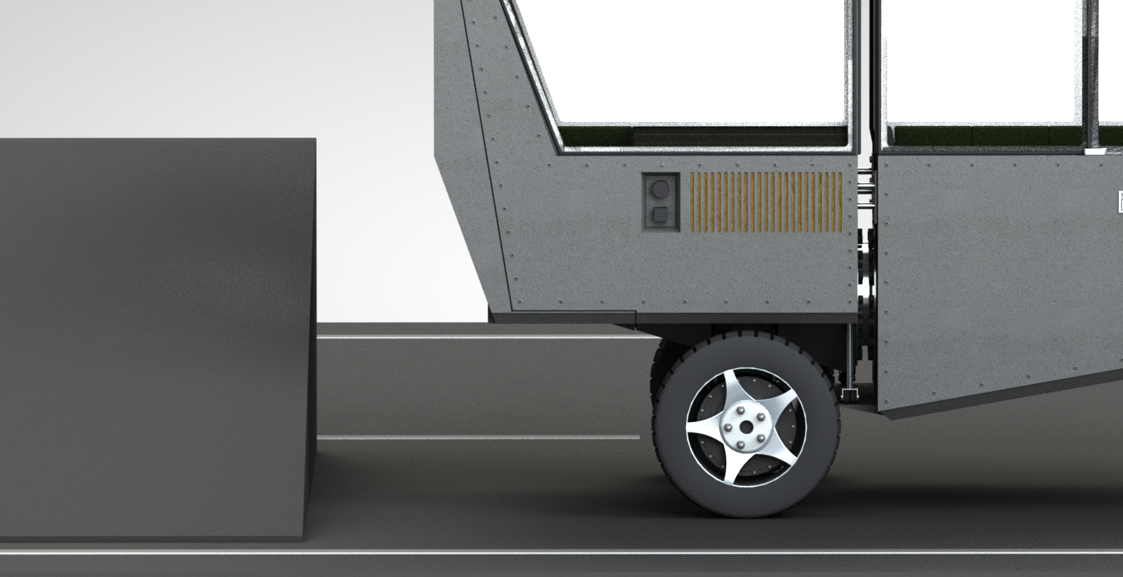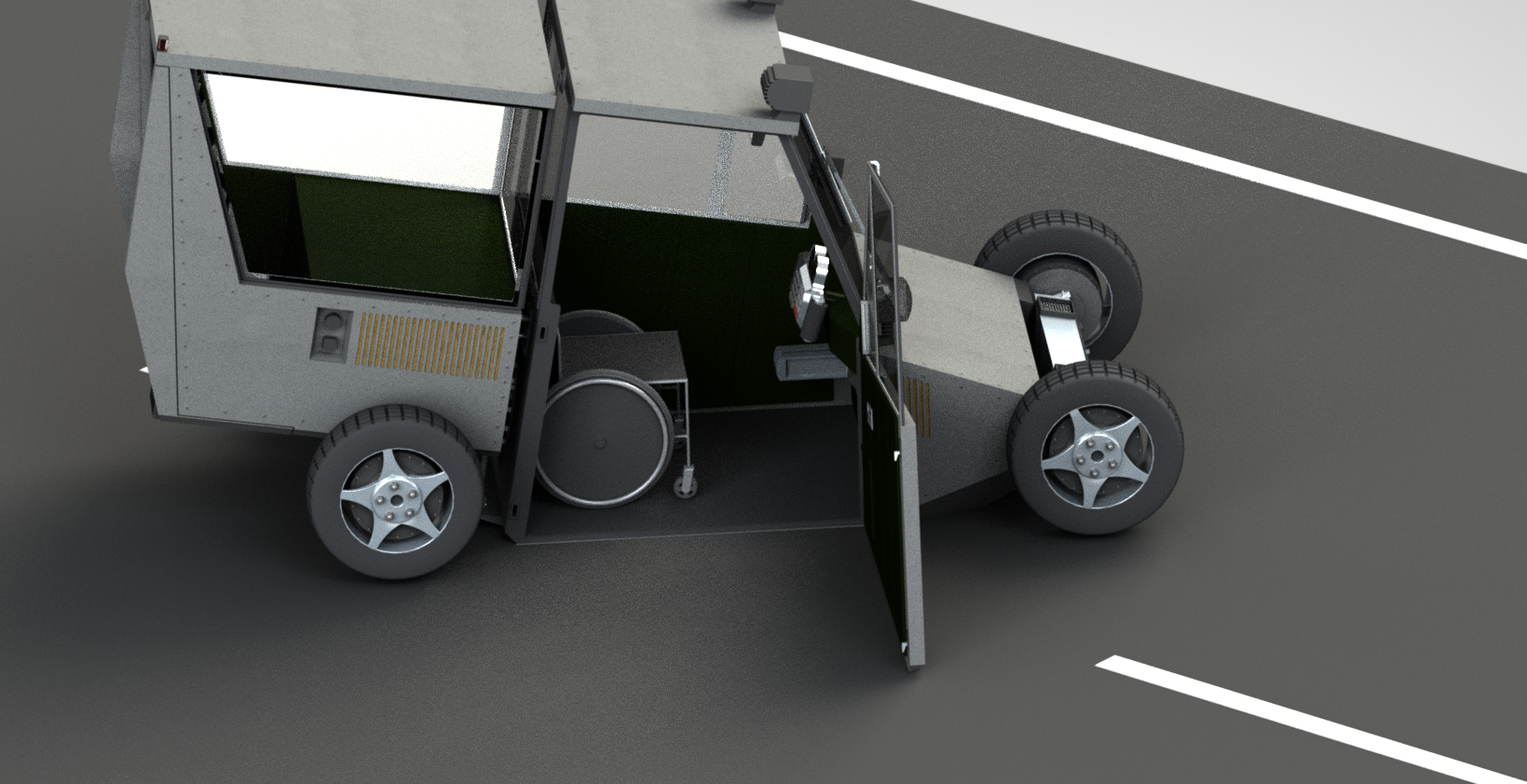 >>54987 >>54992 После более подробных расчетов выяснилось, что ломающаяся рама -- это плохо. Слишком много деталей -- увеличивает массу, длину колесной базы и уменьшает надежность. А еще удобство багажника и обзор портит. А движения колес относительно кузова, сходные с теми, для которых нужен этот шарнир, всплывают как дополнительный бонус от возможности машинки ложиться на пузико. В новой версии концепта цельный кузов и под ним три подрамника -- для передних колес и по одному для каждого заднего. Подрамники держатся параллельно кузову за счет пантографов, а опускаются и поднимаются пневморессорами. Единый подрамник для передних колес -- это чтоб в стороны слишком не качалось, ну и рулить проще. Руль, кстати, на проводочках. Не очень безопасно компенсируется малосерийностью, но зато люфтить не будет, и можно сделать сам руль в салоне совсем маленьким для инвалидной машинки полезно. Температуры -- до -30 (аккумулятор литий-титанатный). Ожидаемая цена 20-30к евро. Но пока еще даже нет первого прототипа...