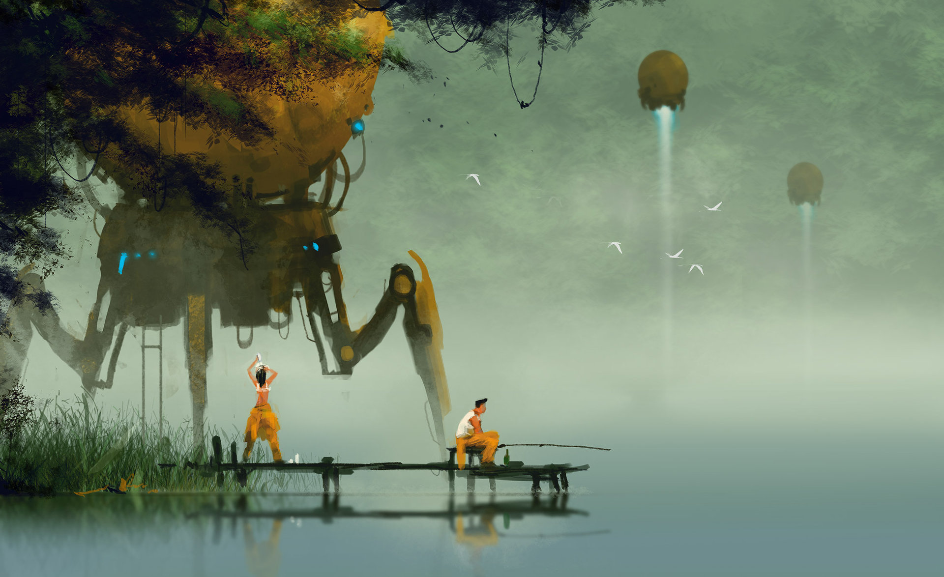 Въезжаем в болото. Вскипает трясина пузырями воздушными вокруг нас. По муды погружается УАЗ, по стёкла, по крышу. Входит вся гусеница полноприводная в болото. И встает.