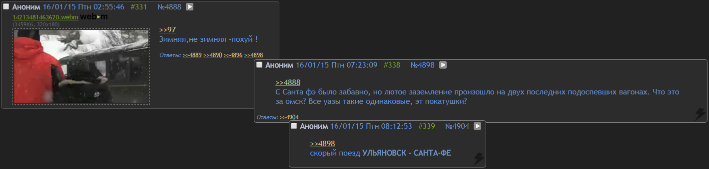 >>4888 C Санта фэ было забавно, но лютое заземление произошло на двух последних подоспевших вагонах. Что это за омск? Все уазы такие одинаковые, эт покатушки?