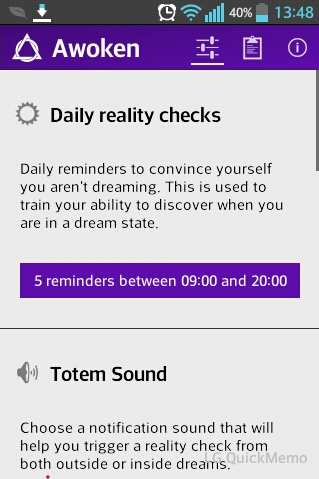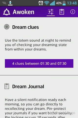 Пользуюсь програмой Awoken для Андроида.Есть три функции: 1)Дневник сновидений.Тут все ясно. 2)Оповещения днем.Выбираешь частоту и интервал времени днем,и программа присылает тебе оповещения.В нем указаны пункты по которым ты должен доказать что ты не во сне.Обратить внимание на детали,читиать один и тот же текст дважды,считать пальцы. 3)Оповещения ночью.Экспериментальная функция.Ночью,когда ты слышишь негромкие звуки того же оповещения,твой мозг автоматически начинает проверку не во сне ли ты.Программа рекомендует не полагатся на эту функцию,а на 1 и 2.