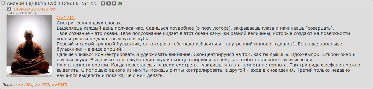 >>24312 Так я ж медитацию тогда и забросил. Сейчас повторно начал. С 1-го февраля медитирую ежедневно.