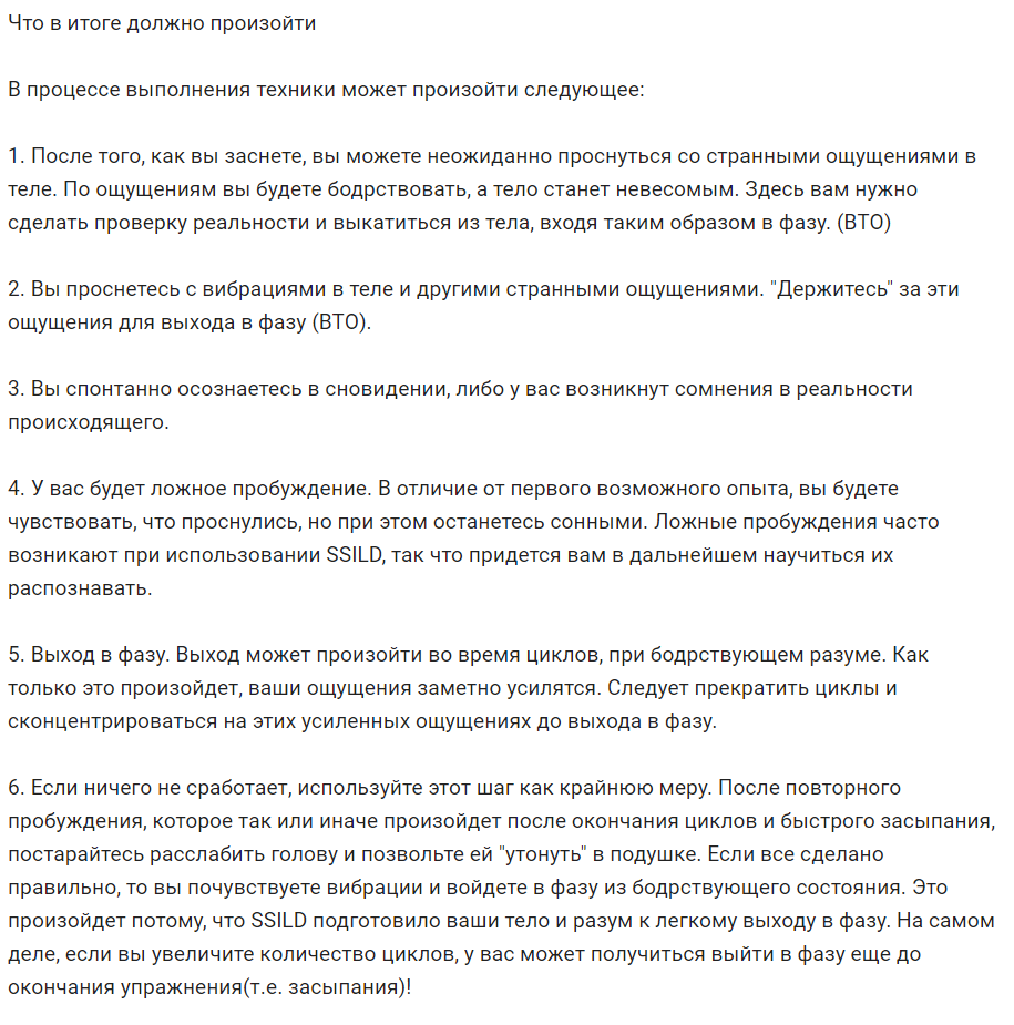 >Что? Вращение, попытки что-то разглядеть с закрытыми глазами (это вообще у Моруа как способ заснуть вычитал, лол), попытки "вылететь" из тела. Само собой, без системы и на фоне бодрствования это никаких результатов кроме бессоницы и ряби в глазах не принесло.