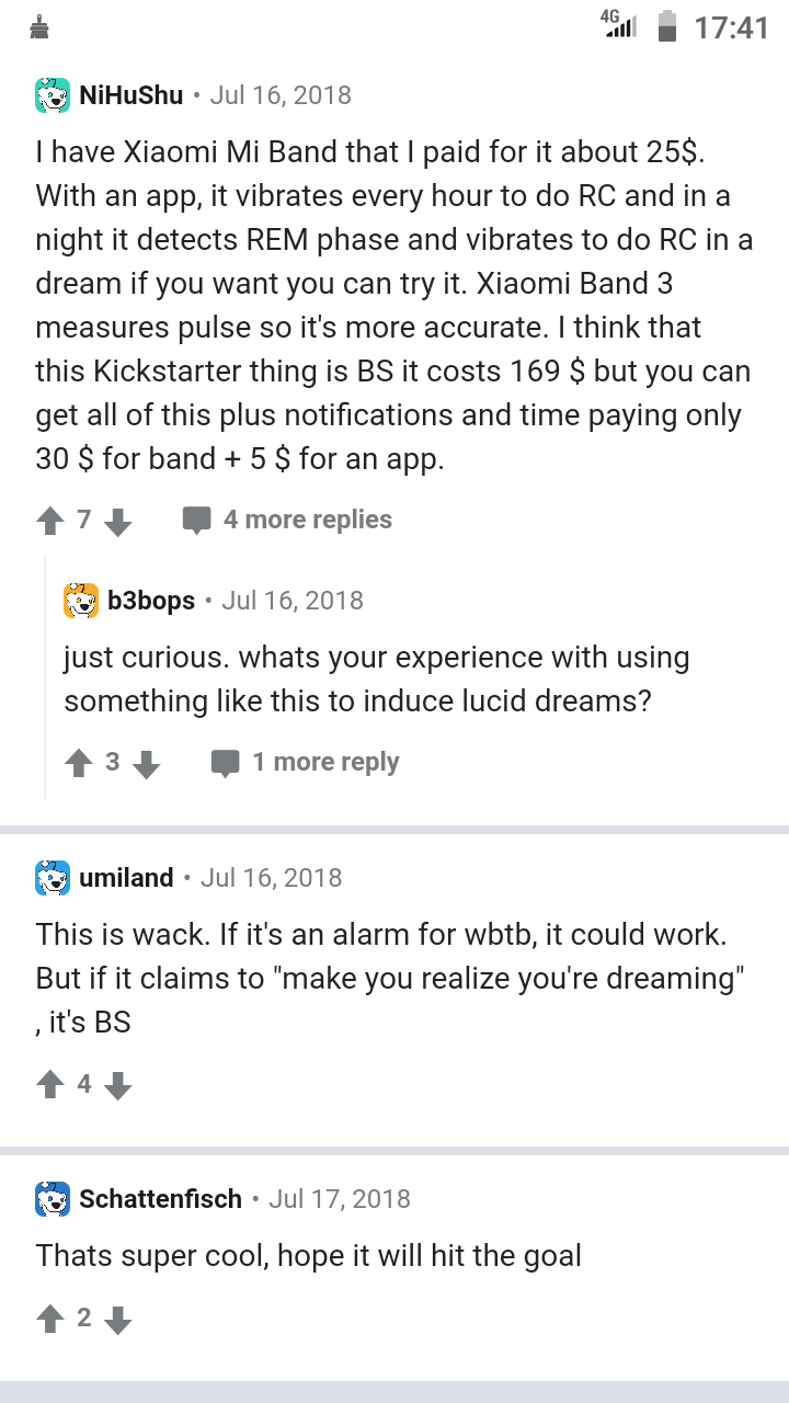 В октябре-18 они обещали, что в феврале-19 бекерам приедет готовый девайс, сделанный в Швейцарии. В декабре-18 они решили сменить сенсор на приборе. В мае-19 они обнаружили, что у них не работает акселерометр. В июле-19 они думают, где им заказать очередной прототип - в тайване или на украине и рассказывают, что делают этот проект ради революционных изменений в сфере осознанных сновидений и не рассчитывают на прибыль. У меня возникают подозрения, что они покормят бекеров завтраками ещё годик и потом объявят о банкротстве, сменят торговую марку и выкатят новый проект на indiegogo.