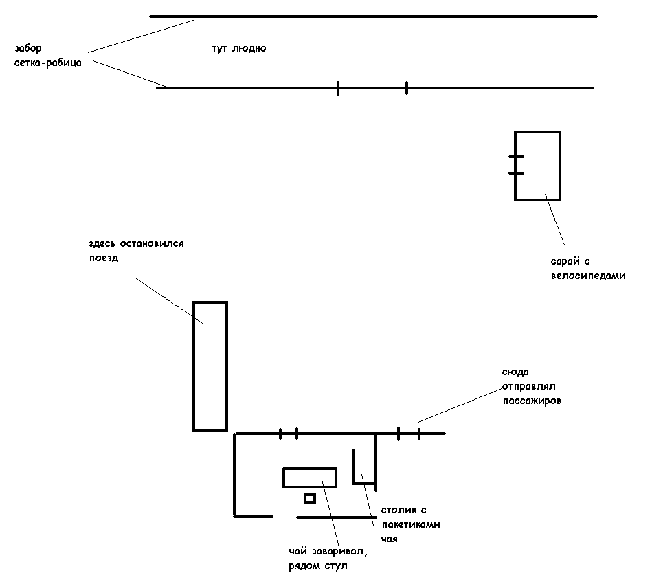 >>23677 Более схематично рисуй. Вместо того, чтобы каждое сидение вырисовывать - можно подписать, что они двойные и стрелочкой указать направление. Во-первых - если вот так детализировать и вырисовывать каждое сидение - напрягать начнет, станет лениво и можешь забросить. Рисование карты не должно напрягать и сие действие должно совершаться максимум просто. Во-вторых - в такой детализации нет смысла. Тут идея в чем Например квадратик нарисовал, и подписал, что это сарай. Когда рисовал - в голове вертел образ этого сарая. И тем самым создал ассоциативную связь между квадратиком и образом из памяти. Теперь, глядя на этот квадратик, в голове будет всплывать образ сарая. Важные детали, которые в первую очередь надо рисовать: расположение объектов относительно друг друга, ориентация в пространстве (с какой стороны вход), расстоянием между объектами, свою траекторию.