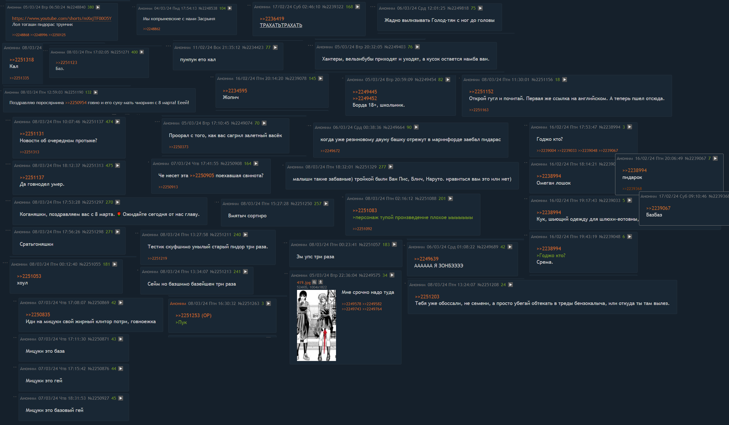 Что произошло с мангачем? С каких пор ламповый и мирный раздел превратился в бурлящий чан говна? Я понимаю еще локальные местечковые форсы, но эта хуйня почти во всех тредах разом. Что случилось? Раньше поадекватнее местные были, обсуждения интересные, а сейчас найти пост длиннее пары предложений, без срача и не содержащий "пук/баз/кал" тот еще квест на нулевой