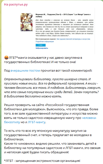 Привет, аноны. Сегодня из фонда библиотеки в Москве изъяли для доступа всю мангу. Да, вообще всю. Бо