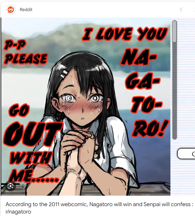>>2351824 >>2351825 Afterword In 2017, just as I was thinking about quitting my job, Hiratsuka-san from the magazine editorial department approached me, and before I knew it, this series began. At first, I was nervous about drawing this manga, thinking it would definitely be canceled...! But thanks to the support of the readers, it was made into an anime, and the series has continued for six years and nine months. Thank you so much to all the readers who have read it up to this point, and to all the people involved who have supported me. I was also very happy to receive enthusiastic support not only from within Japan, but also from people in various countries overseas. I am very encouraged by the comments on Magapoke and the fan letters. I'm sorry that I'm not very good at writing, so I can't reply to everyone very often. The story of "Don't Toy With Me, Miss Nagatoro" was originally a hobby piece I drew whenever I felt like it online, and I think I've safely reached the destination I vaguely envisioned for Miss Nagatoro and her senior since then. When I announced the end of the series online, I received far more comments than I expected from people expressing their sadness at the end. Many emotions welled up inside me, including happiness that the series had grown into one that was loved by so many people, gratitude to the fans, regret that it was coming to an end, and a sense of nostalgia for the series. However, I believe that if I force myself to continue, it will move away from what the series should be, so I have decided to put my pen down. The serialization of "Don't Toy With Me, Miss Nagatoro" has ended, but the days of Miss Nagatoro and her senior will continue forever. With these feelings in mind, I drew this final bonus manga. I can't promise when it will be, but when I feel like it, I might draw the daily lives of Nagatoro and friends in a one-shot format. So, readers, thank you for reading this far. Manga: Nanashi