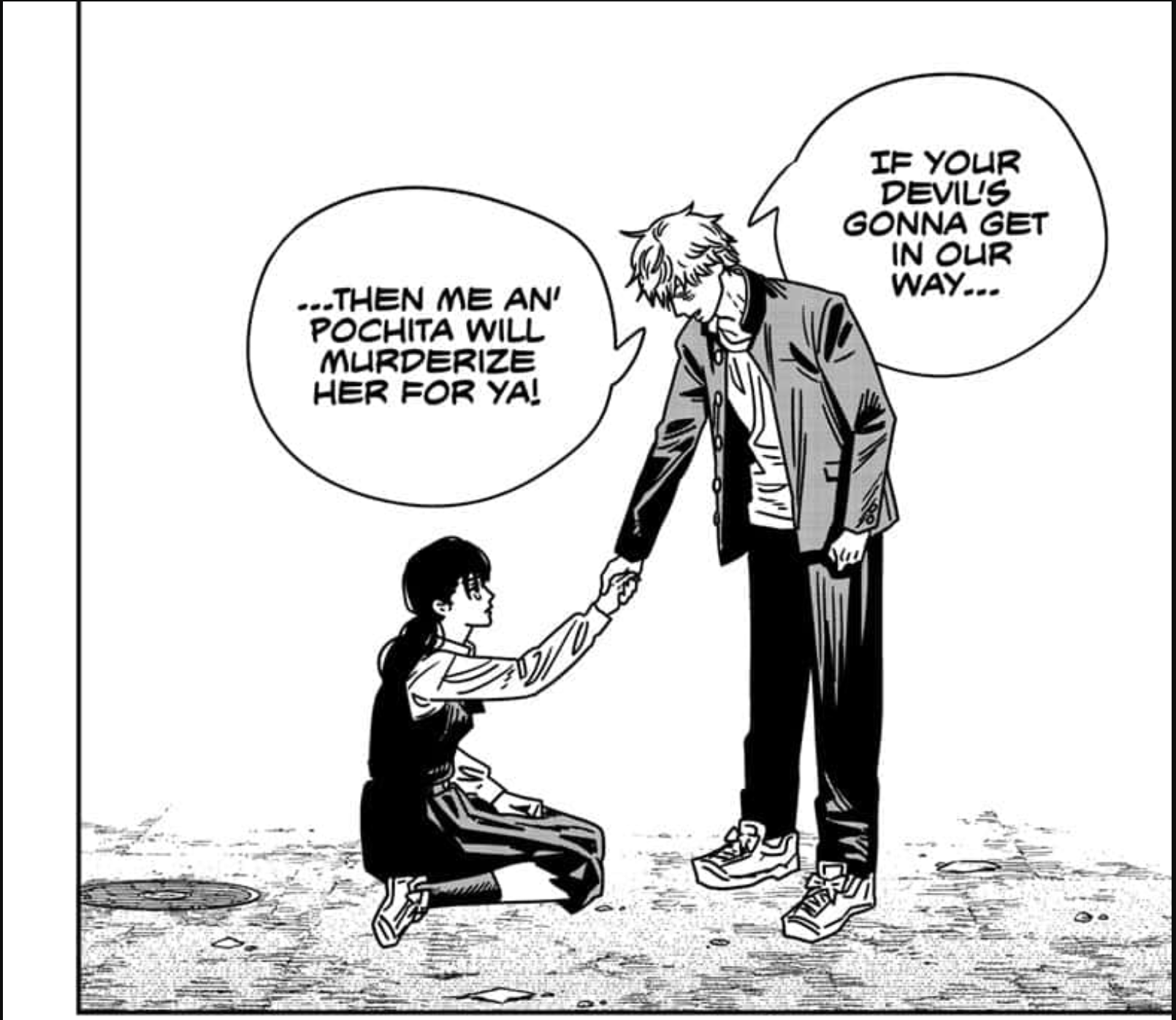 >>2466438 ну если верить лил д - бесконечная война бессмертных, а для этого ей надо сделать из почиты оружие и ебнуть смерть, но демоны любят лгать, вообще тут какая-то логическая несостыковка, потому как в прошлой главе почита сам чуть не ебнул смерть, а она на него орать начала за это, мол ты че творишь человек бензокал