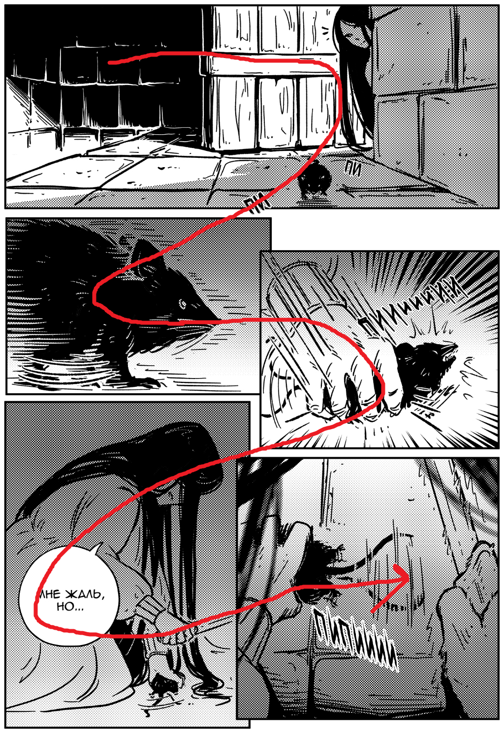 >>2460838 Переход со 2го кадра к следующему - неочевидный из-за того, что он не находится на одном уровне с кадром справа. В японской манге это считалось бы грубой ошибкой, если за этим не стоит какой-то задумки. Блять, ты вообще не умеешь комиксы читать? Как раз тот кадр специально так сделан чуть ниже, да еще и с наложением, чтобы взгляд буквально скользил к нему - от носа мышки к руке самым кратчайшим путём, да ещё и по движению. Тут как раз твой взгляд буквально за ручку ведут, в отличие от каких-нибудь европейских комиксов, где 30 фреймов и заебешься понимать в какую сторону вообще читать. >>2460848 Тут разве что в первом нарушение раскадровки, потому что движение снизу вверх. Но автор все равно что-то придумал и выбрал показать это одним кадром разделенным на фреймы, получилось красиво. >2й пик >Это не прочитать слева-направо ни при каком желании. Просто признай ,что ты тупенький.