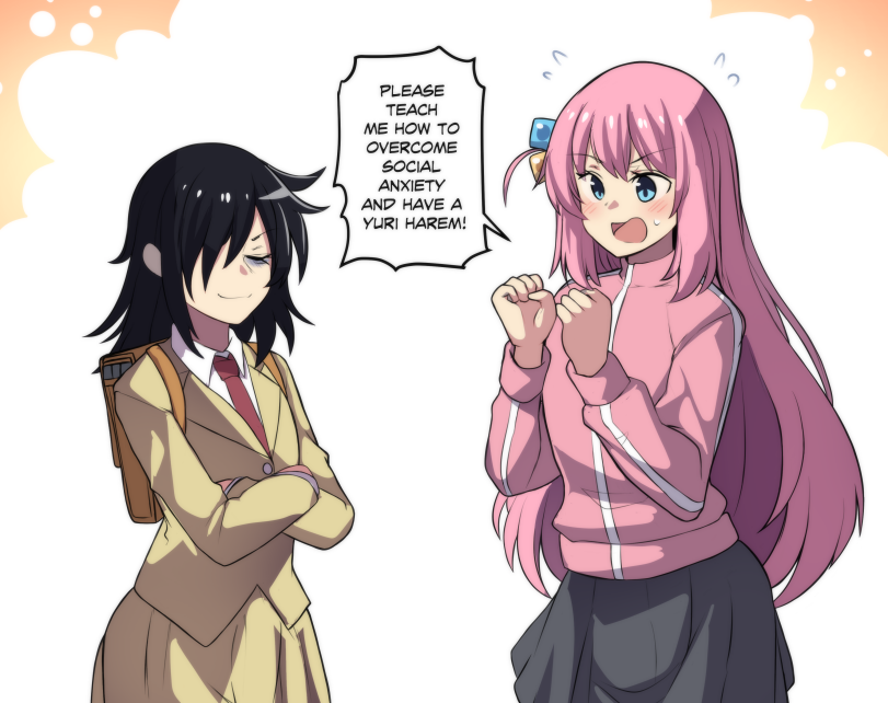 Я хз куда писать,поэтому напишу сюда,потому что Коми-треда не нашёл. На днях посмотрел аниме про Коми ,и после просмотра начали лезть сравнения с ватой. Мангу про Коми не читал,потому что там рисовка полное говно имхо. Так вот. Коми ,для того,чтобы найти друзей,не предпринимала активных действий. Да,она там почитывала книжки про общение и разговаривала с кошками,но это точно не сравнится с эпическими предприятиями Томоко. Друзья,не говоря о поклонникам, у Коми появились сами. Достаточно было одному ояшу понять,что она хочет общаться,так все тут же и получилось. Томоко же ,превозмогая, самостоятельно завела подруг в поездке в Киото. Ещё сама концепция того,что Коми ни с кем не говорит,даже с двоюродной сестрой,кажется глупой. Серьёзно? Бред же. Ее неспособность говорить,но при этом писать, смахивает на какое-то органическое поражение мозга или задержку в развитии,но никак не на проблему социализации. Томоко в этом плане более приближена к реальности. У неё есть те,с кем она может откровенно поговорить и даже поиздеваться, но вот с незнакомцами она фейлит все диалоги,как это происходит у сычей ирл. Но не могу не обойти стороной внешность. Коми объективно 10 из 10 и по сути только на своей внешности на неё с самого начала обратили внимание. Будь она такой же обычной как Томоко, всем было бы плевать. Подводя итоги,скажу,что Томоко я все же уважаю больше. Она самостоятельно ,благодаря превозмоганию обрела гарем подружек, в то время как Коми как была камнем,так и осталась почти без изменений. И да,я сравнил комедию и ромком. Жанр в данном сравнении роли не играет. Что скажете?