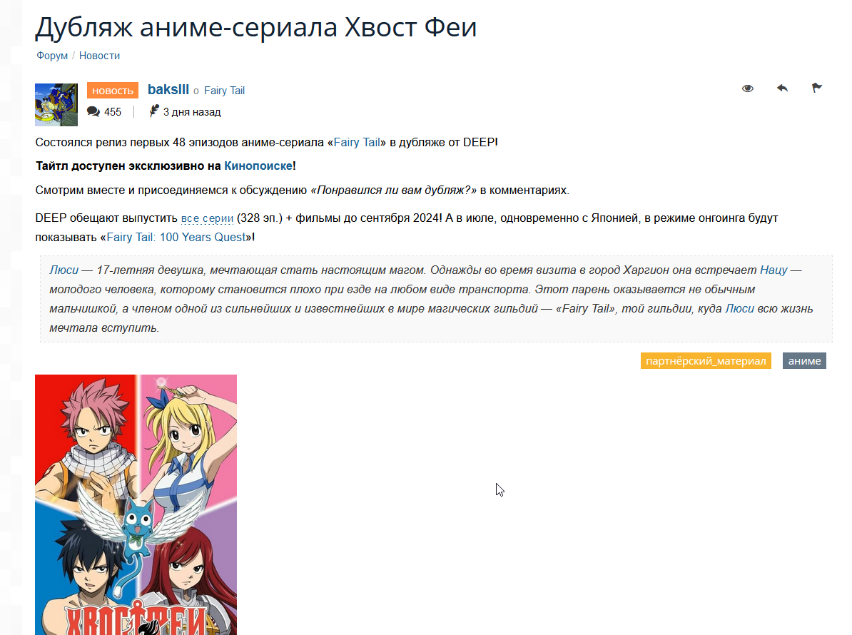 Кстати, когда они брали квест. Мне чем-то тоже напомнило квест с дейбрейком. Когда у Люси сверкали жадные глазёнки; опять же она первая заговорила про награду, за что кот ее подъебал. По-моему, в оригинальной манге других таких кейсов не было.