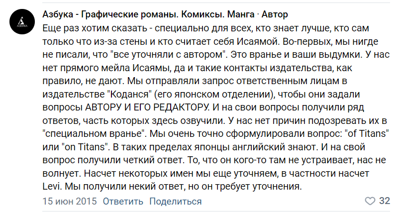 > Хватит держать мангак за идиотов которые не знают про все эти приколы со звуками и которые невкурсе про латиницу. У него, кста, у Нирваны, где ноги по сюжету должны отрывать шестеро - то 7, то 8 ног. Никто же не говорит, что он считать не умеет.
