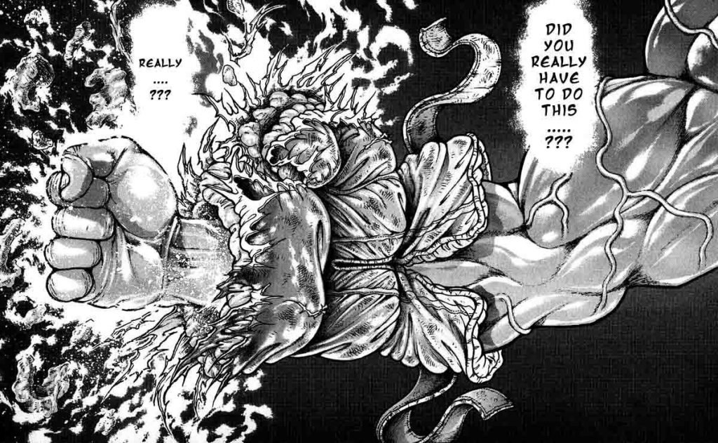 Да манга просто шикарна при чем почти каждая панелька такая Не понимаю как баки можно смотреть в том виде в котором он есть, ведь это манга про бои в первую очередь, и рисовка итагаки тут никак не заменима