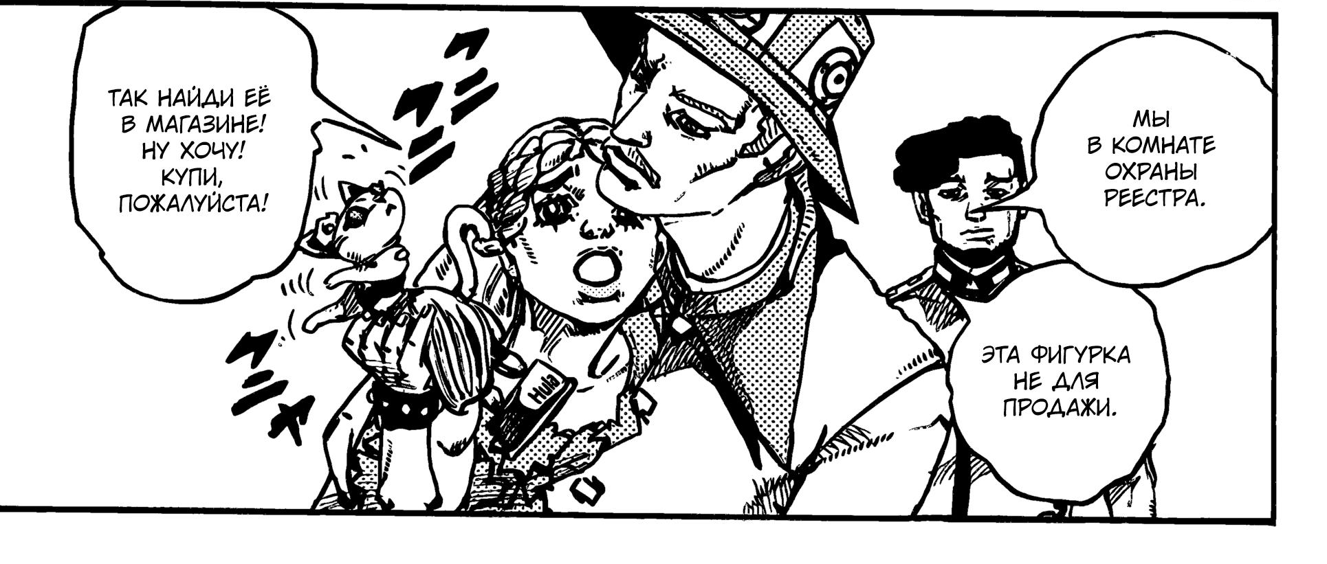 Так и хуй с ней. Я 16 глав еле выдержал с паузами. Пососные всратые дизайны главных героев, пососные стенды и сюжет копипаста 5-й части, но с нехаризматичными персами. Можно найти на любом другом ридманга-гой-либ-сайте. Даже хорошо, что ркн удалил ее, чтобы не позорить всю франшизу
