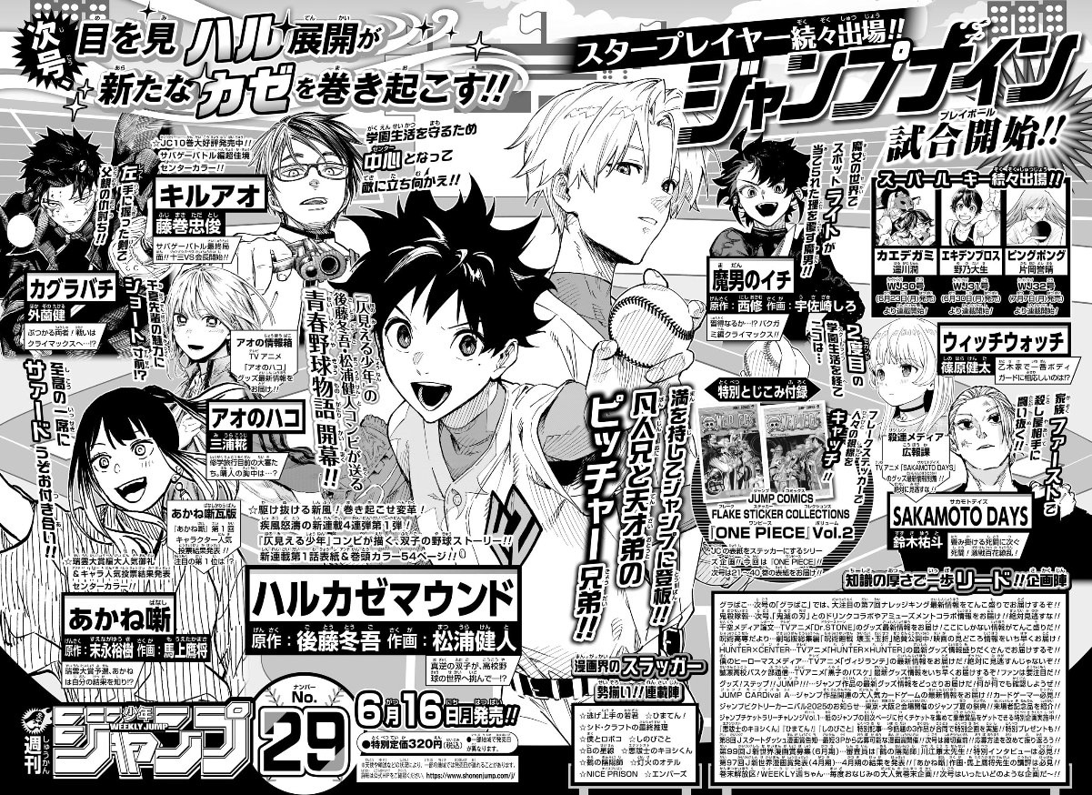 32 TOC Ping Pong (New Series/Cover/LCP/54p) by Kataoka Yoshiharu Ichi the Witch SAKAMOTO DAYS Blue Box Kagura Bachi Nue's Exorcist Ekiden Bros (CP/25p) Akane Banashi Harukaze Mound Witch Watch (CP) Kaedegami (23p) Otr of the Flame Me & Roboco Exorcist no Kiyoshi-kun (CP) Shinobigoto Himaten! Nige Jouzu no Wakagimi Kill Blue NICE PRISON