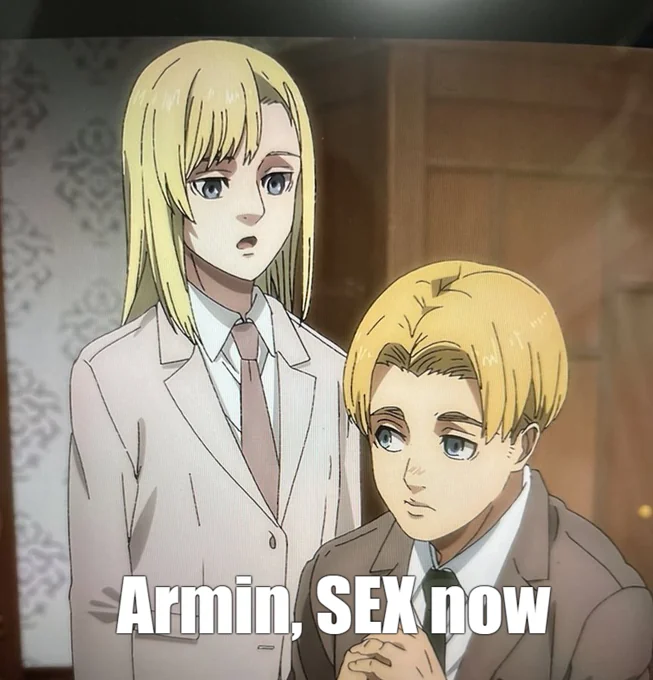 Только сегодня выкупил в чём прикол сцены, где Эрен говорит: "Руки на стол, блять!" Он скорее всего видел, что опиздюлит Армина и хотел этого избежать.