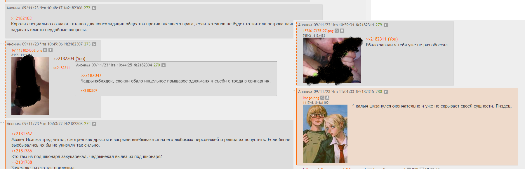 >2495999 Трипс базированный. Чушка открывавшие хавала на командора Армина попущены с их копровождём калопучком срыней и отправлены на порашу к кукольдодирухам.